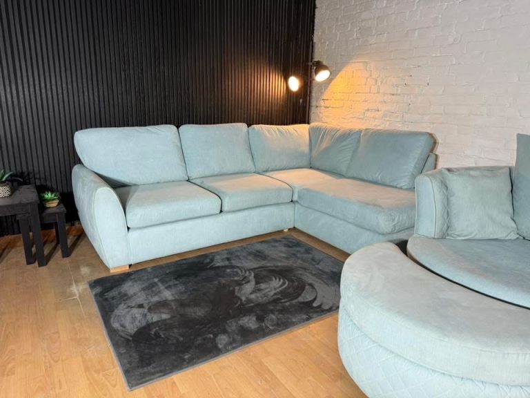 Beautiful DFS ORKA corner sofa set upholstered in a stunning baby blue fabric 😍