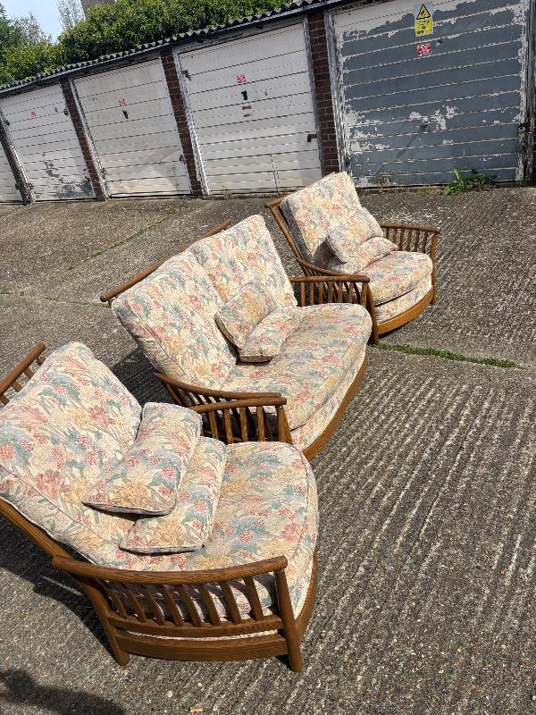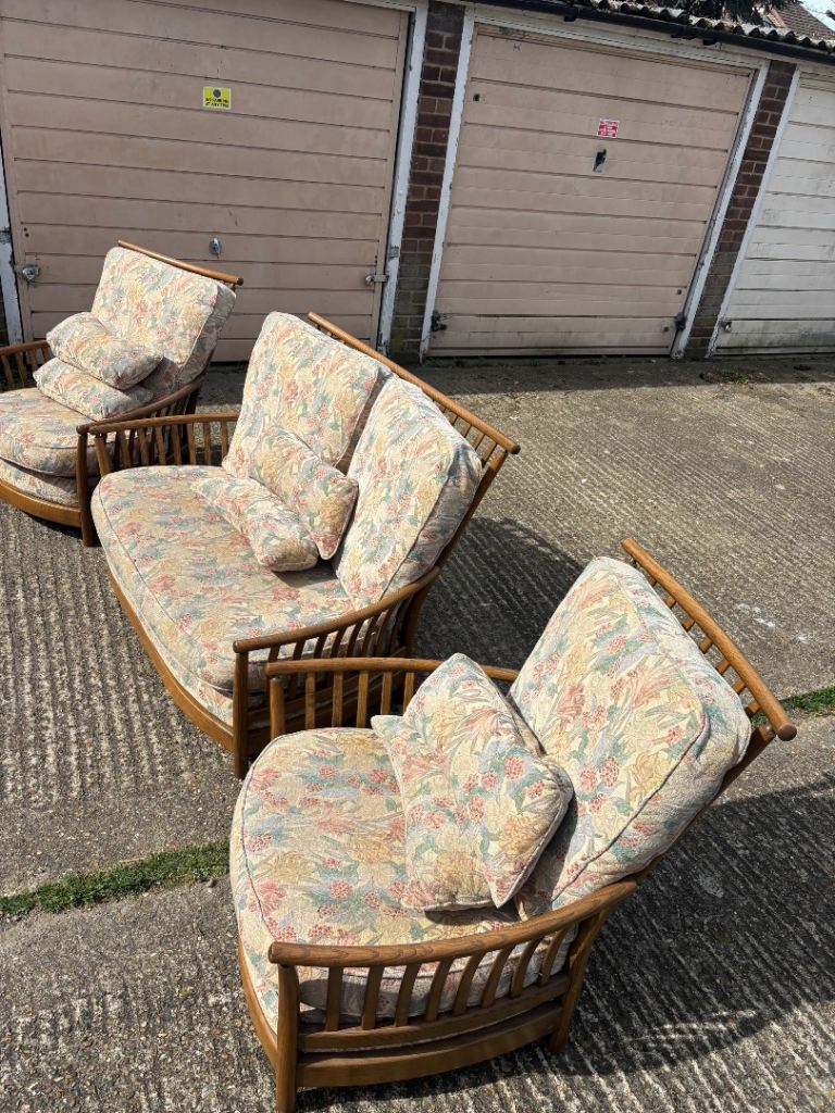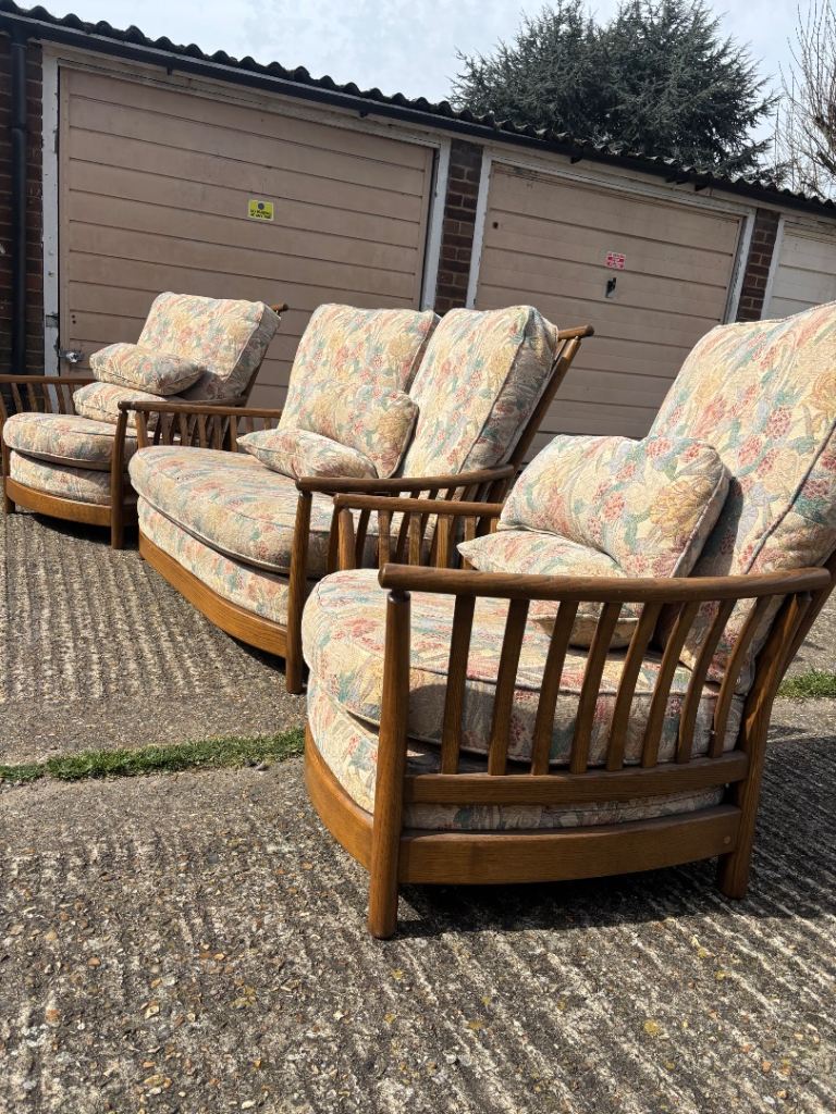 Vintage Ercol suite with a 2-seater sofa and two matching armchairs