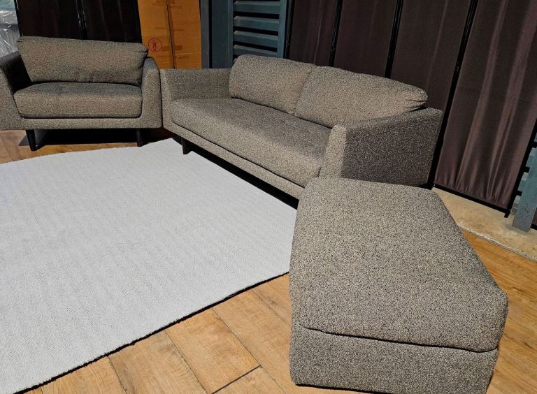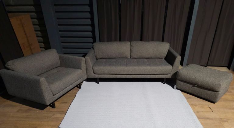 Fabric sofa, cuddle chair and large footstool - charcoal.