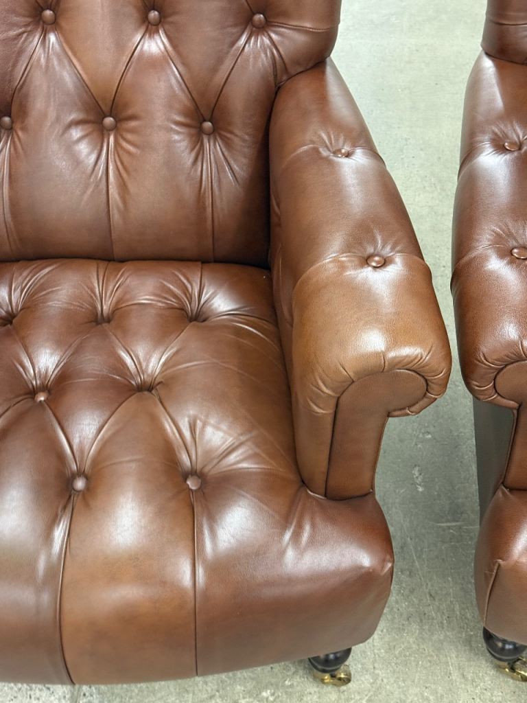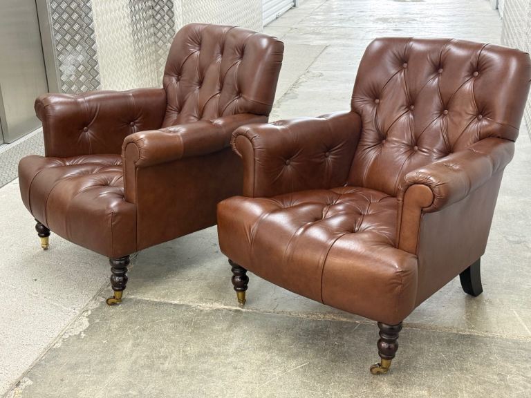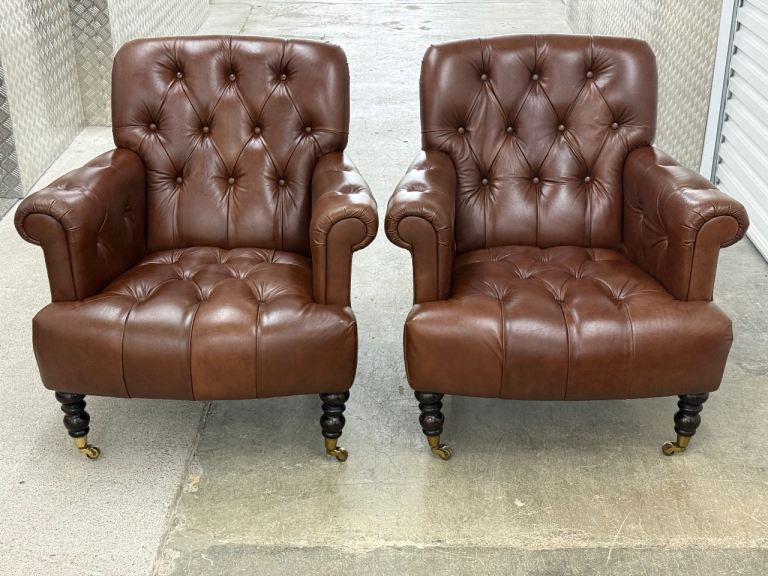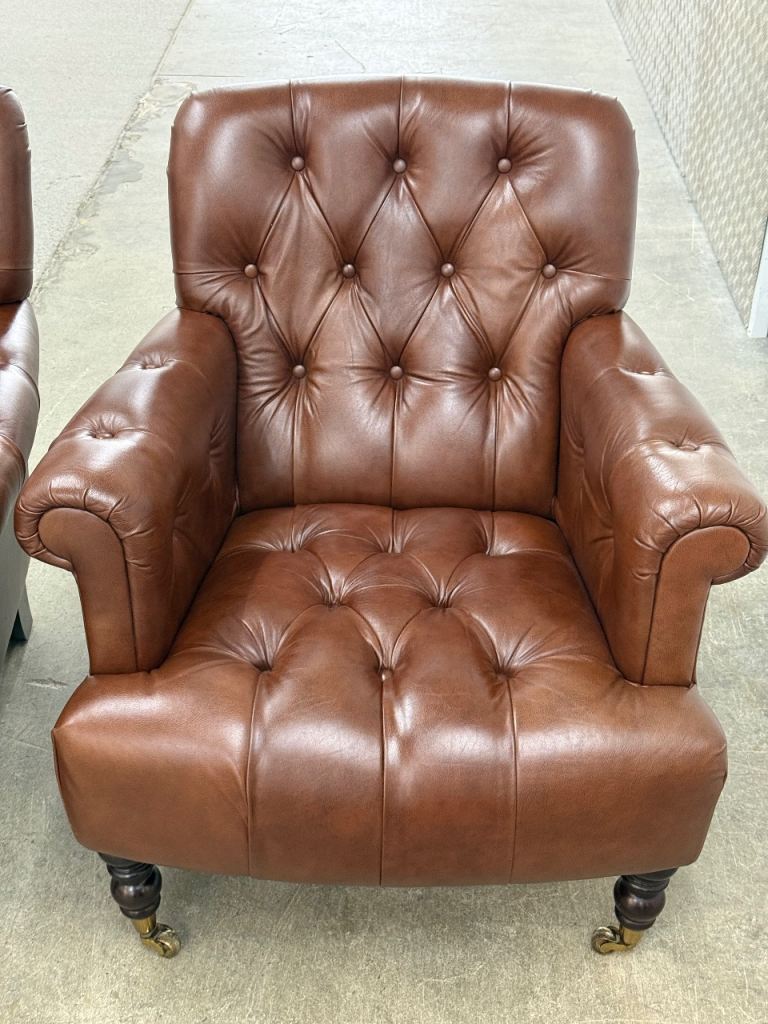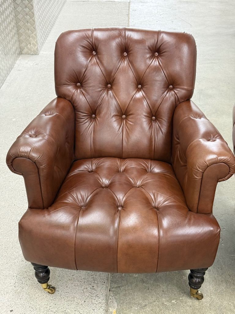 Laura Ashley pair of Alberton leather armchairs chesterfield style