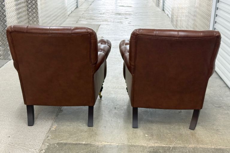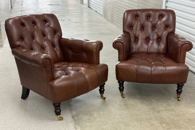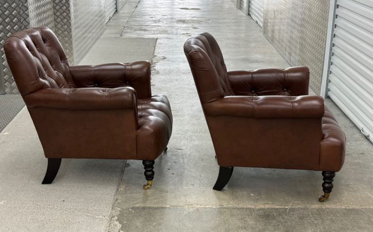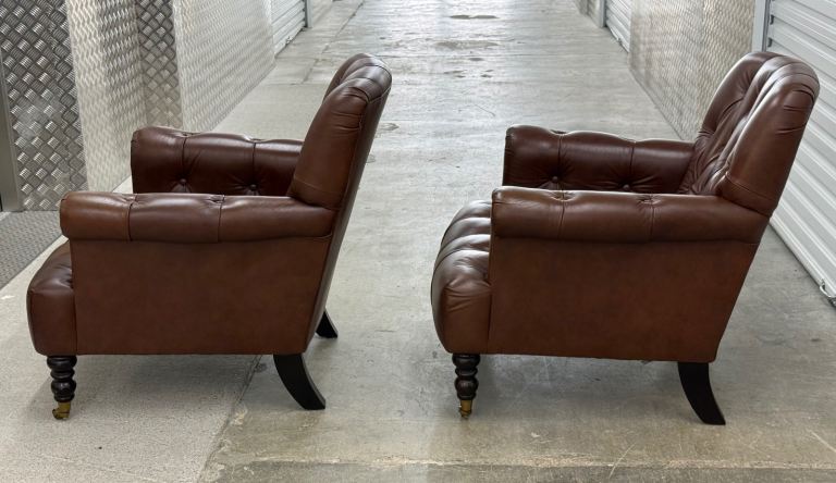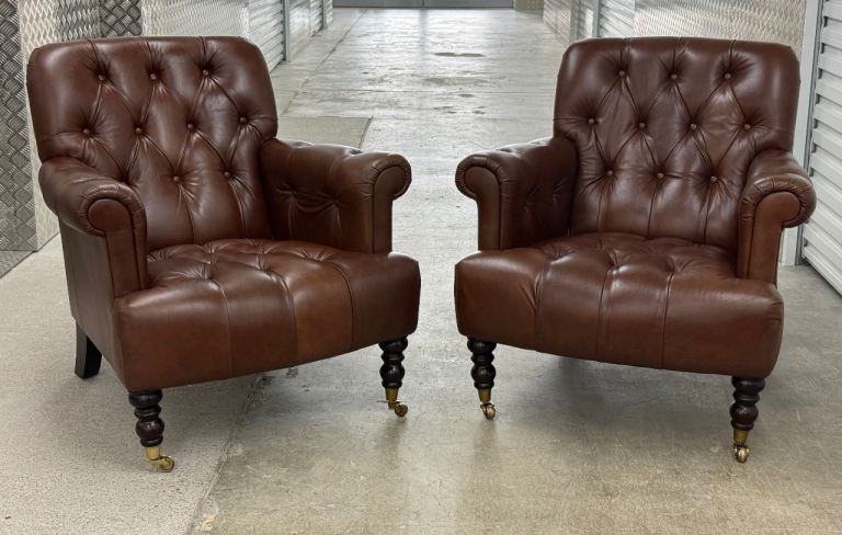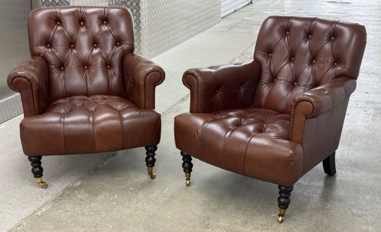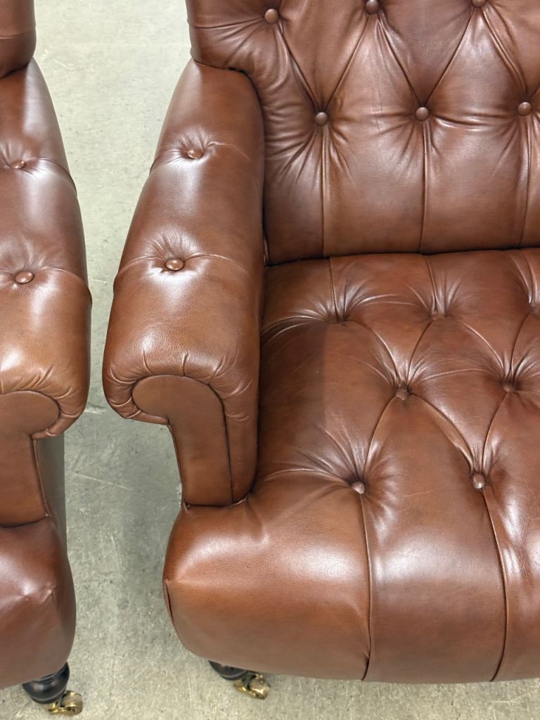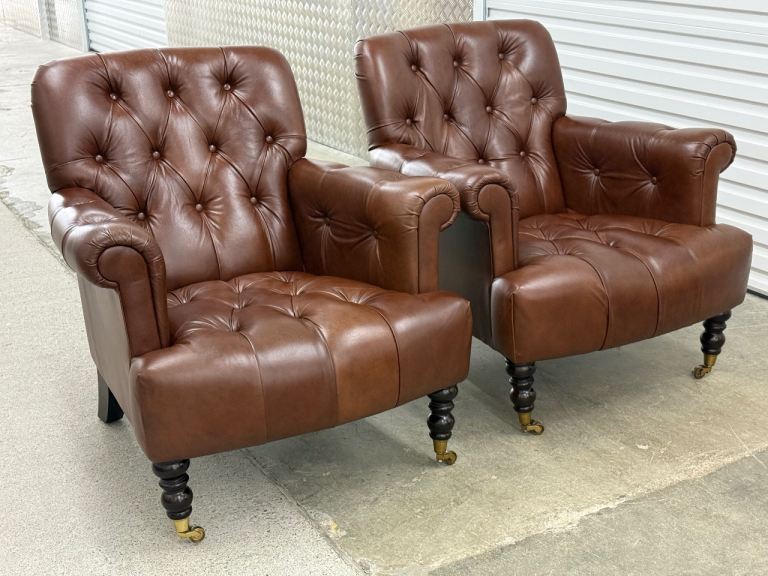 Laura Ashley pair of Alberton leather armchairs chesterfield style