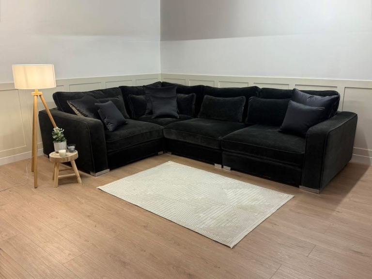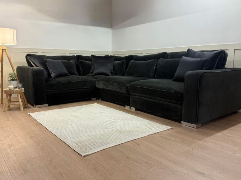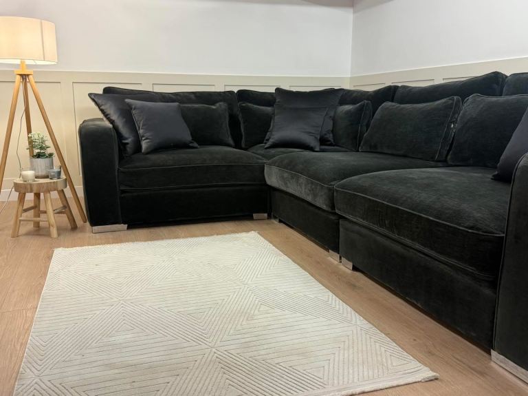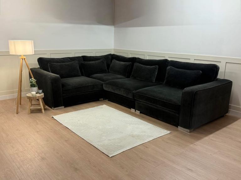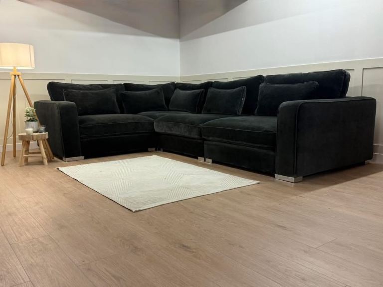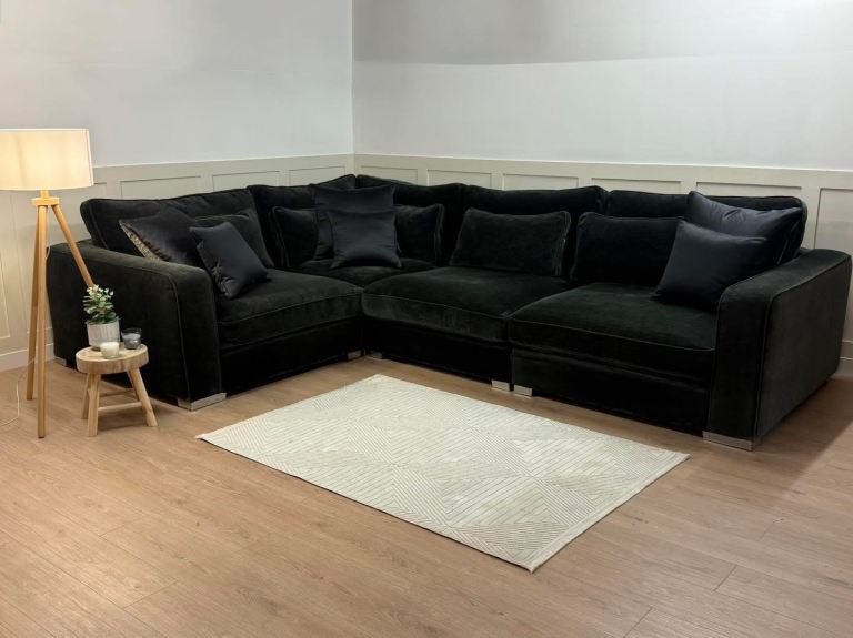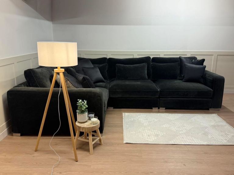 A sofa you can get lost in, sit back and relax on the Sofology Cavalli Large Corner Sofa 🖤 Upholstered in beautiful chenille fabric, it feels as soft and indulgent as it looks. Generously deep-seated cushions, with the upgraded foam filled option for a firmer yet relaxing feel ☁️ Spacious enough for the whole family yet effortlessly elegant, this is the kind of sofa that turns relaxing into an experience! This is the top end quality which Sofology provides and will be the masterpiece of any living room which can fit it 😍 All added cushions are made with feather and fibre for that final touch of luxury 🪶