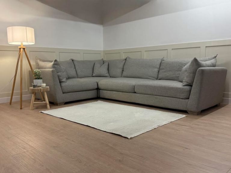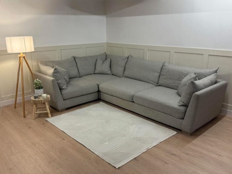 Sofology Tallulah 2 grey corner sofa 🩶Upholstered in soft fabric with upgraded memory foam cushions for extra comfort. Stylish metal glides give it a modern finish – the perfect mix of cozy and chic for any living room. Sofa also comes with the possibility of making it into a large 4 seater sofa, making it perfect for re decorating and changing up the living room!