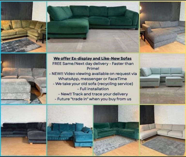Viewings by appointment — over 90 sofas in stock, like-new and ex-display from major high-street brands. Viewings by appointment only you are welcome to book in