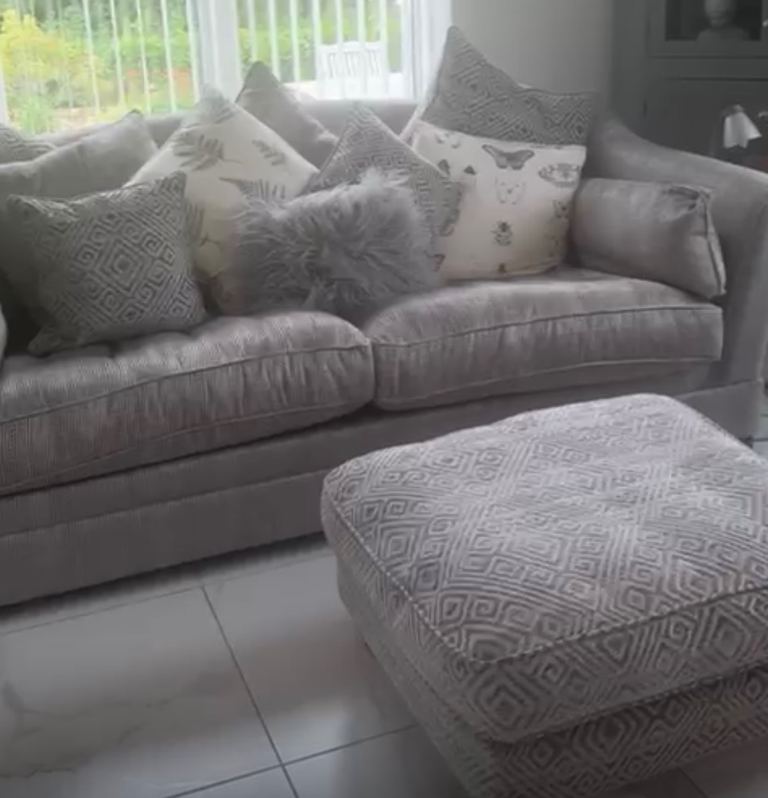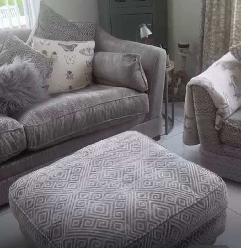 Absolutely stunning Parker knoll sofas 4 seater 3 seater love seat single seat foot stool and cushions in excellent condition as you can see from photos grey colour with white/cream flex in pattern