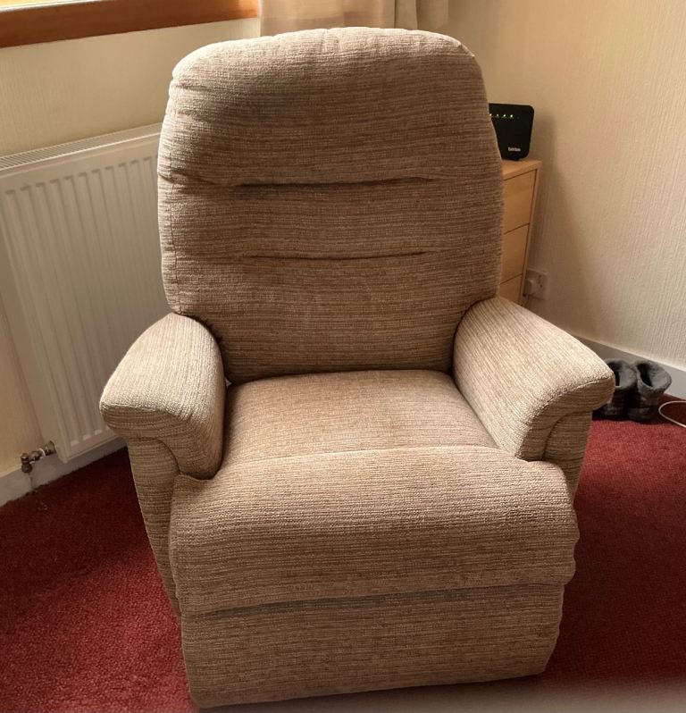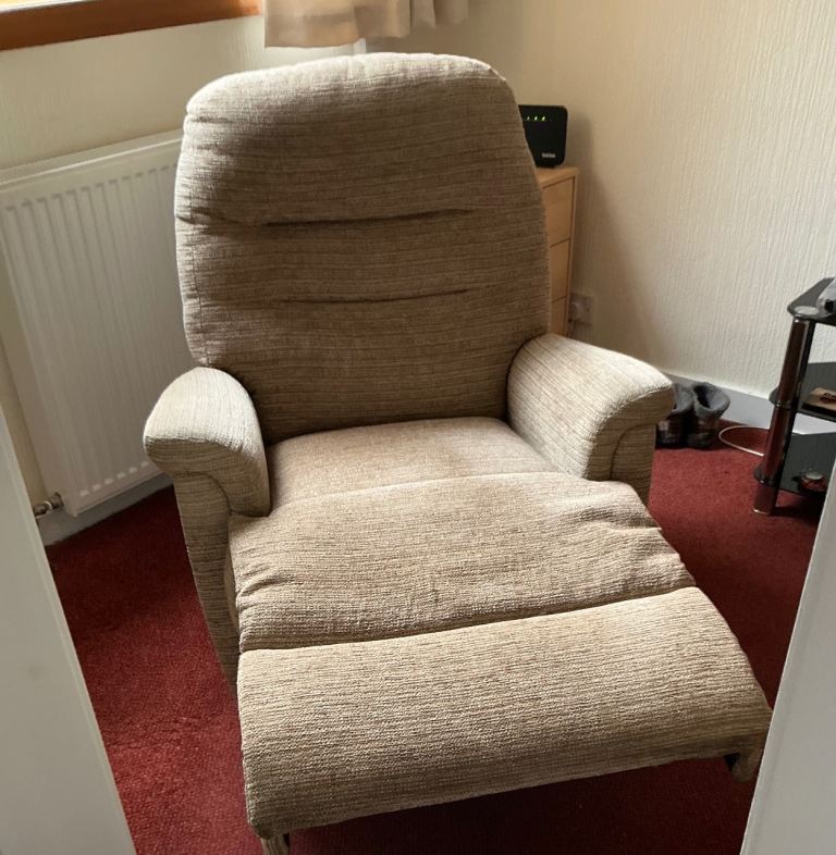 Two seater settee and two chairs, one chair reclines. By Sherbourne