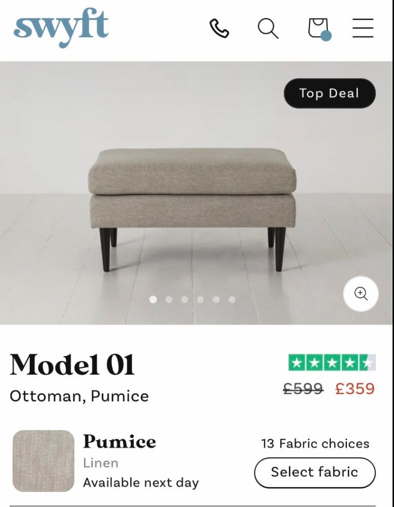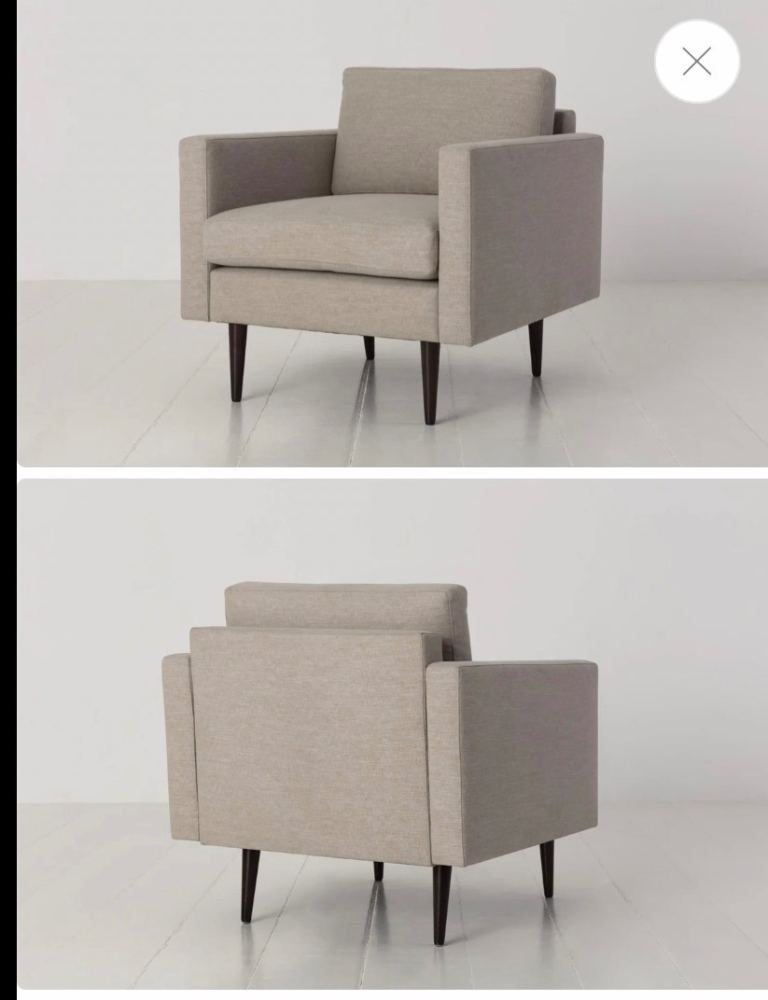 Sofa, armchair and ottoman for sale due to house move. Some marks due to move but in very good condition. Only two years old. All can be bought for new for £2000. See Swyft website. Sofa is called Model 01.