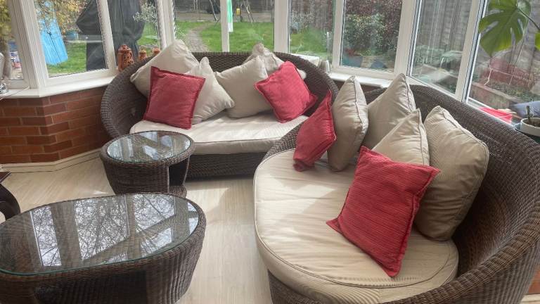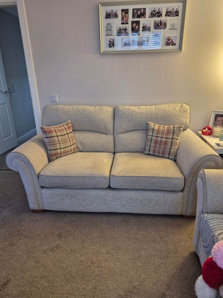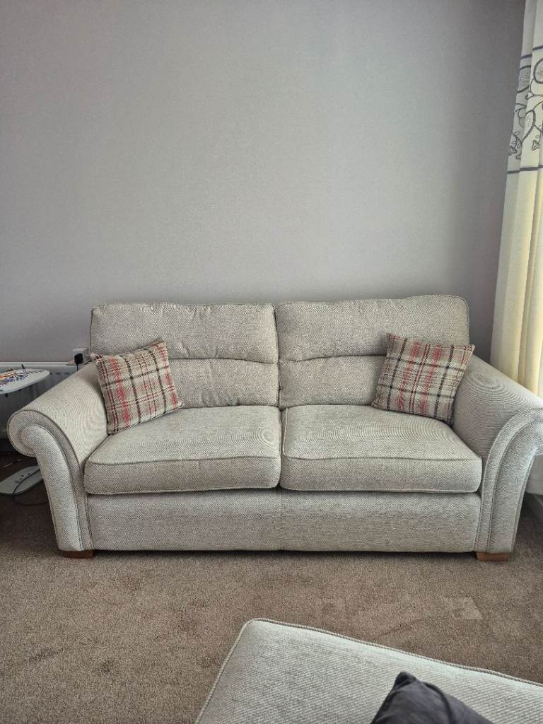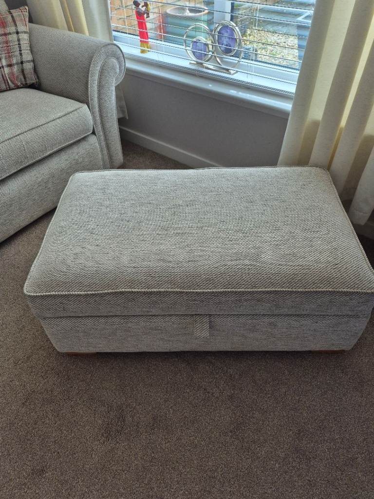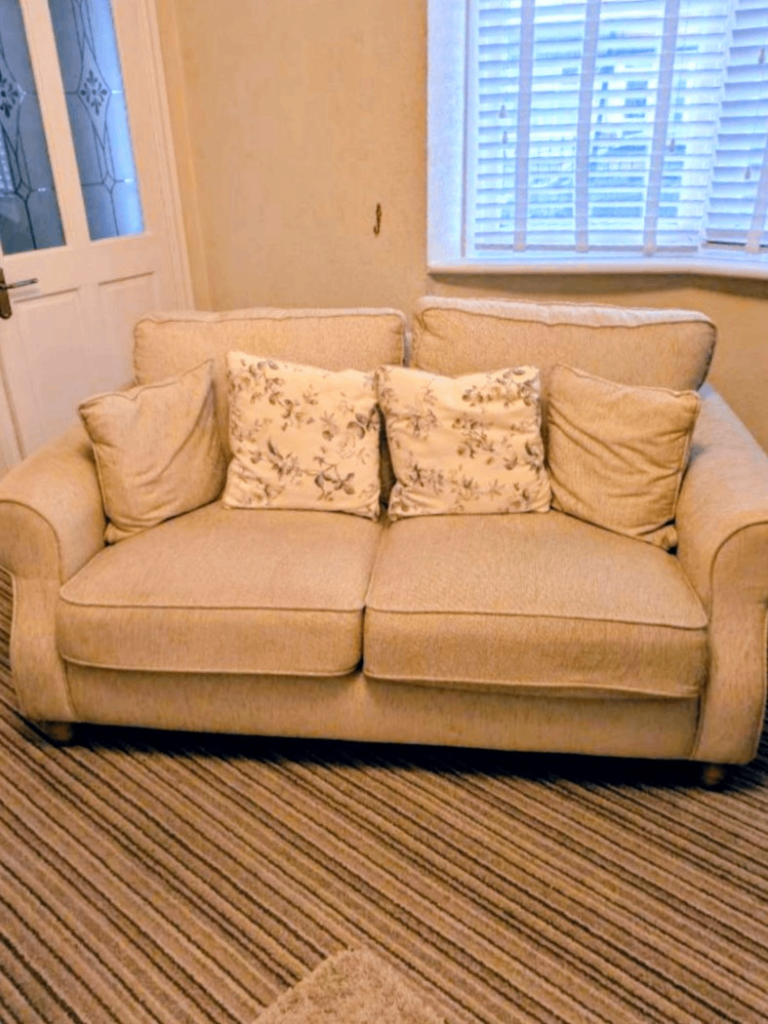 Two seater sofa and three seater sofa with matching storage puffe was professionally cleaned in December also comes with cleaning kit from smoke free home