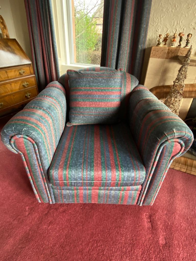 It has been loved but it’s time for it to find a new home. One of the arms of one of the chairs (the final photo) shows quite significant signs of wear. Otherwise, it is in good condition. Free for collection.
