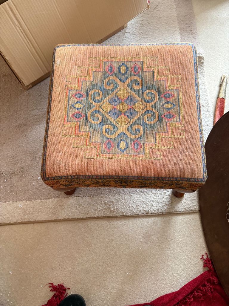 Includes matching decorative cushions; overall very well-kept and sturdy.