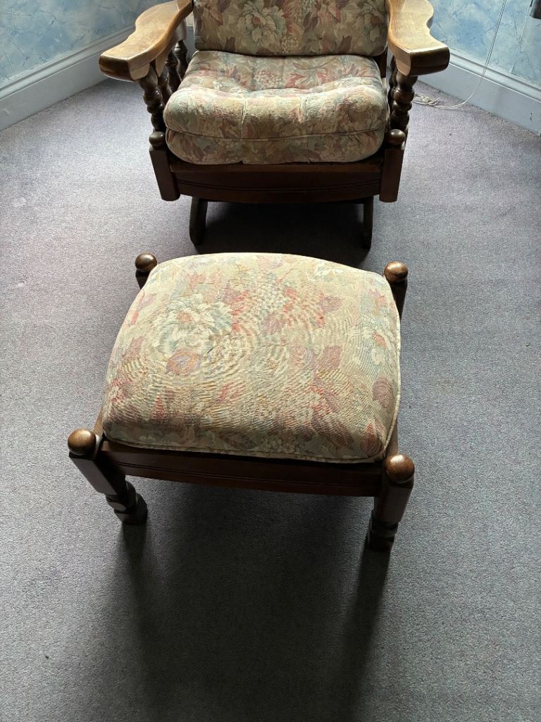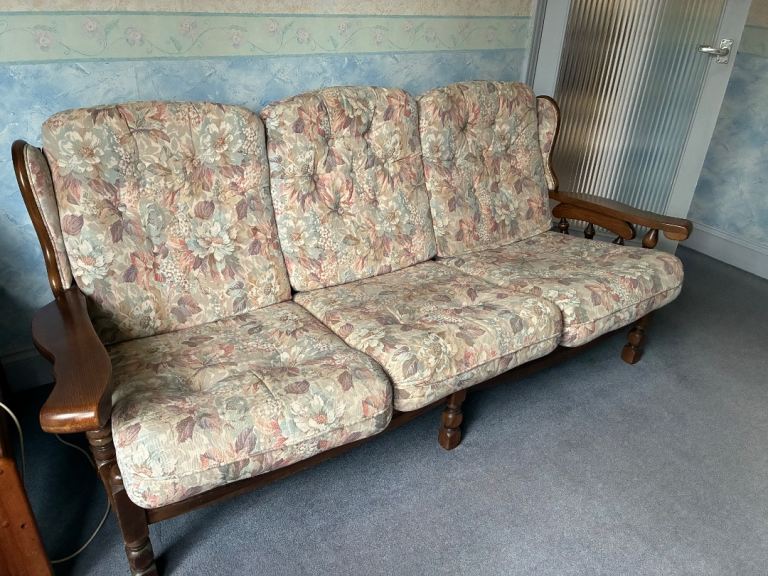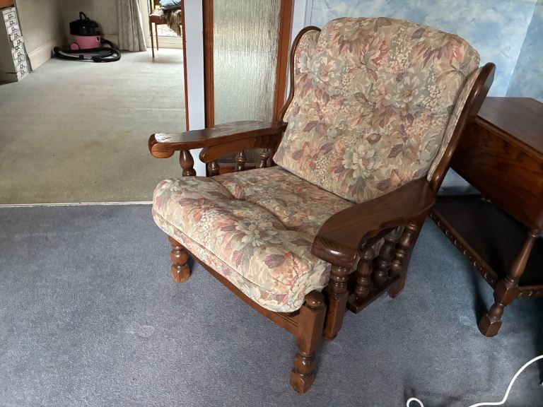 Free to collector, 4 pieces, a 3 seat, a single seat and a rocking seat, also a foot stool. Good, solid furniture , very comfortable and in good order, free to collector or it will go to a charity shop