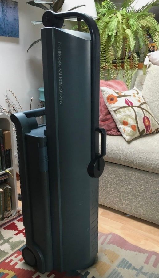 Phillips foldable sunbed. In full working order. Tubes working. Gets very hot. Foldable and compact. Has wheels for easy access