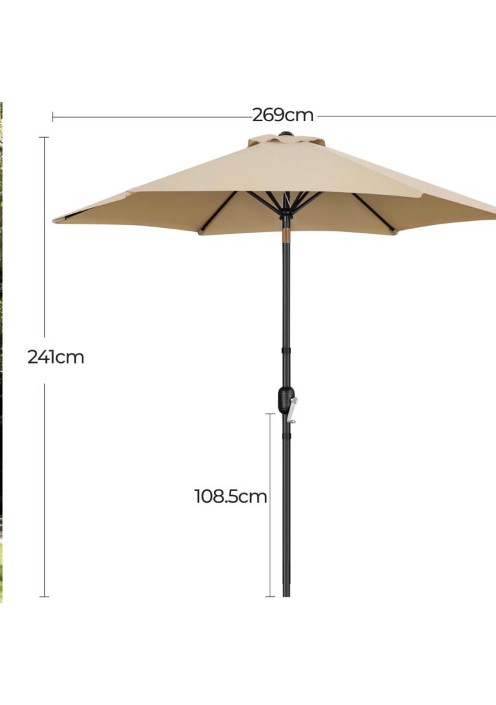 2.7M Round Garden Parasol Umbrella Outdoor Sun Shade with Tilt & Crank Handle for Patio, Balcony, Deck, Pool and Beach - Tan