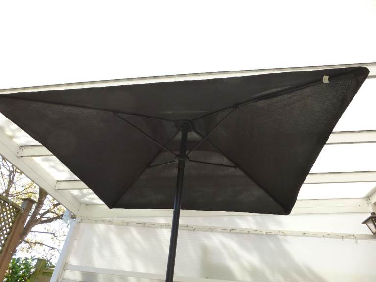 Garden parasol. Black. Never used. Excludes base. Good condition.