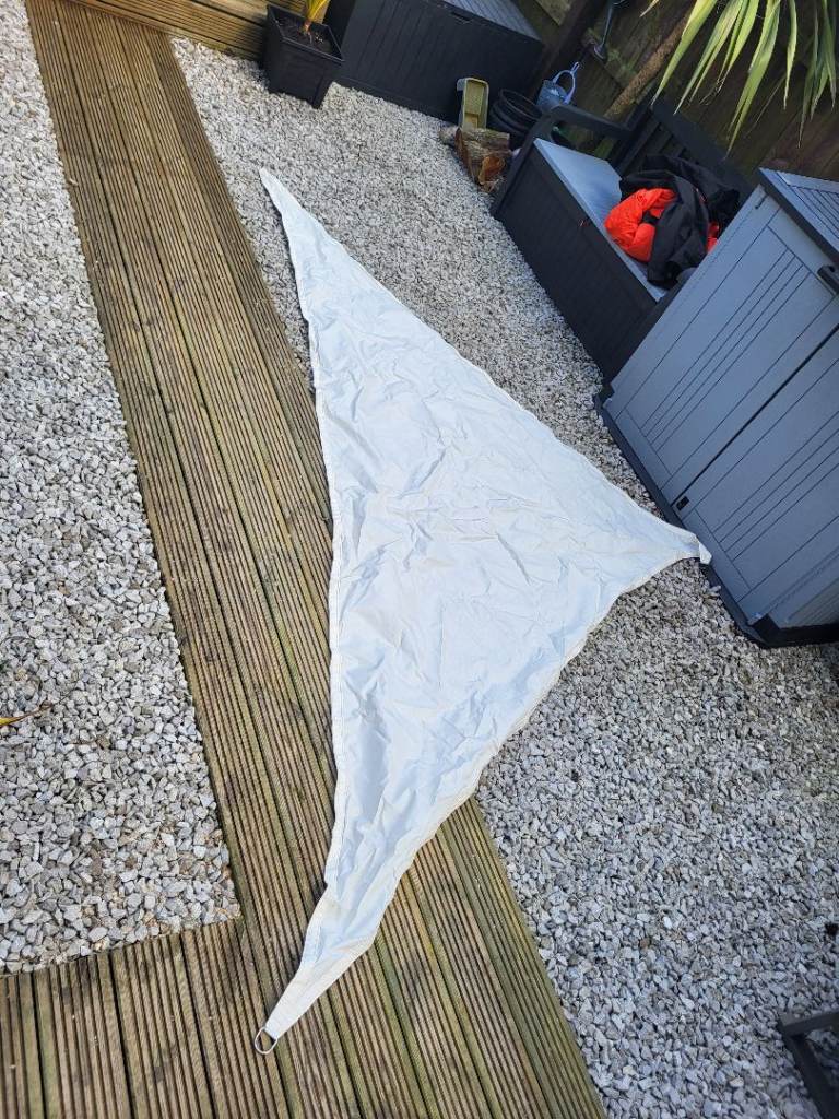 Triangular sun shade sail available, in good condition and ready for use (never used).
