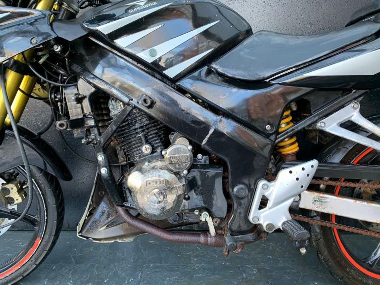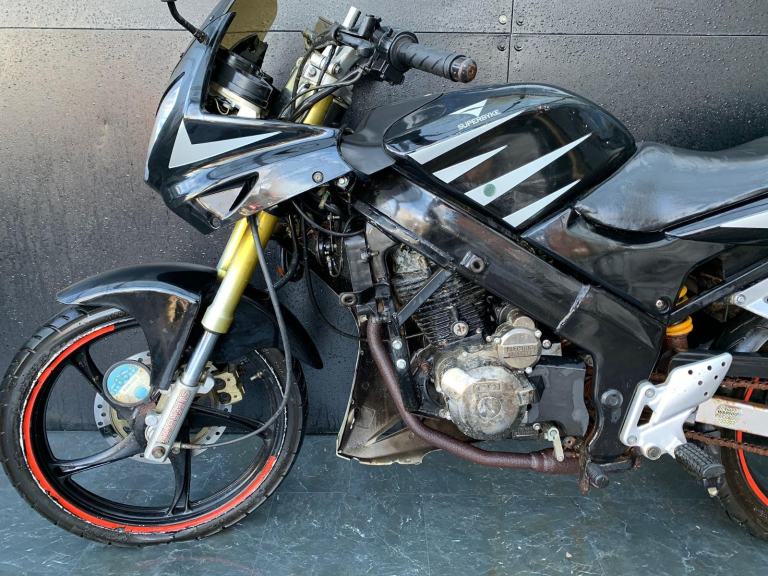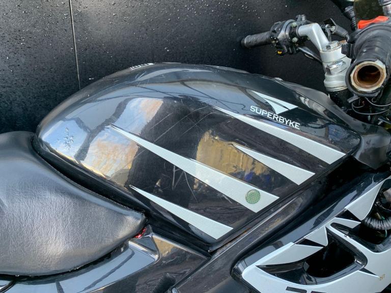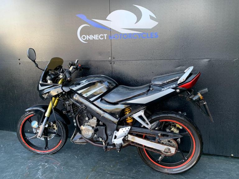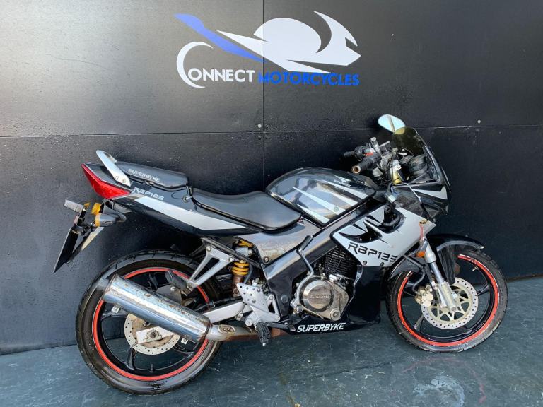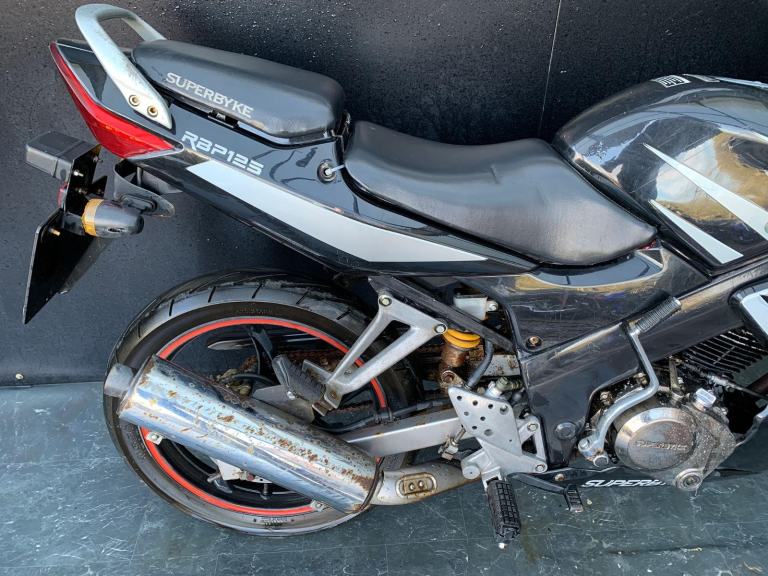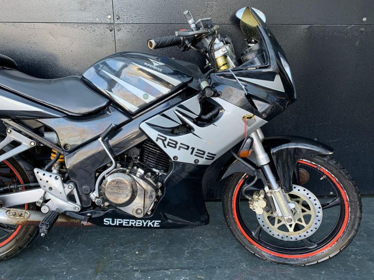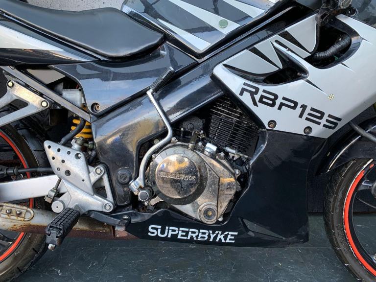 /Here we have for sale a Superbyke RBP 125 as a project bike in overall not bad condition. We have not had this bike running, there is no key, it will turn over on kickstart. As shown it is tatty in areas, we have not tested the electrics. The tyres are in fairly good condition. The MOT expired 16/09/2021. We do not have the V5 for this bike.