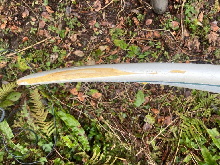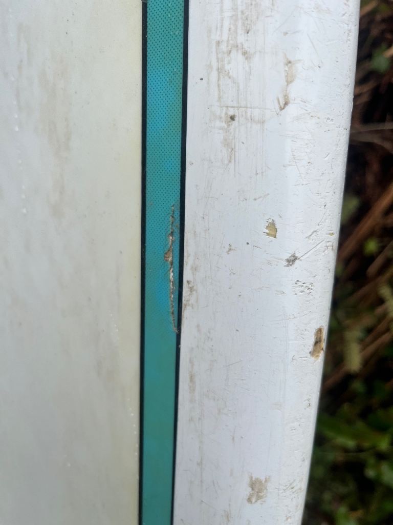 This surfboard has several drag marks etc which is usual for ex hire surfboards. The board doesn’t take on water and still has plenty of life left in it. Ideal stepping stone from foamy to a more intermediate board.