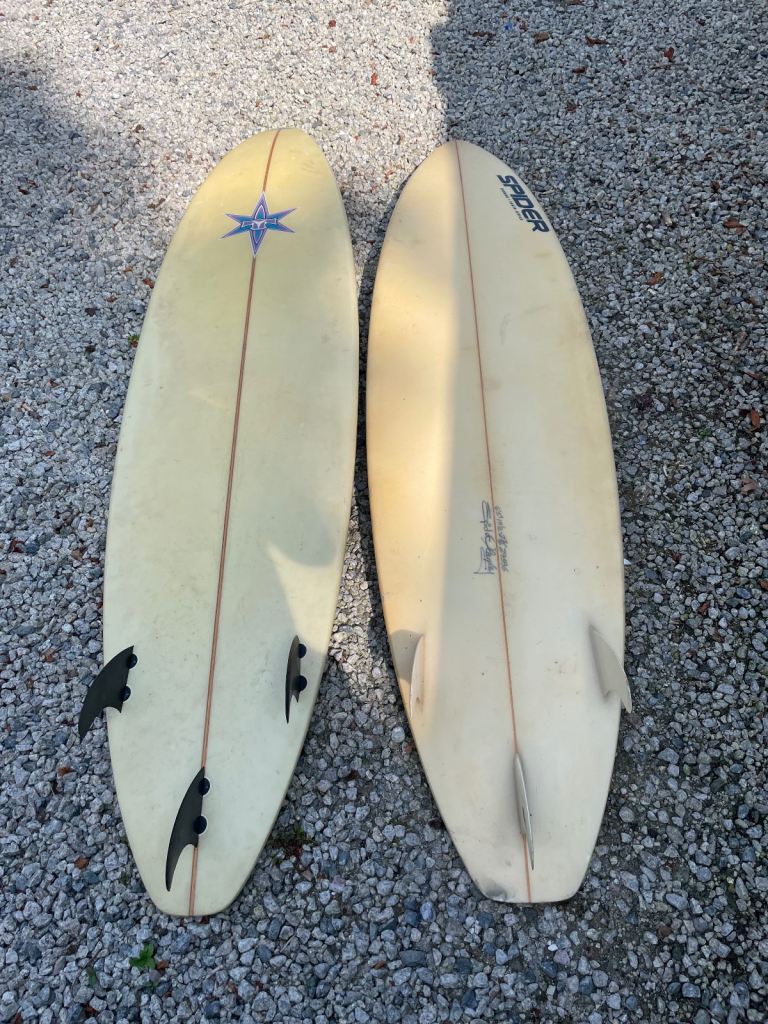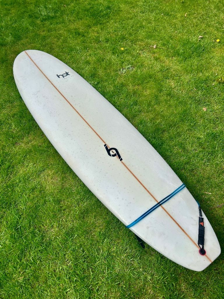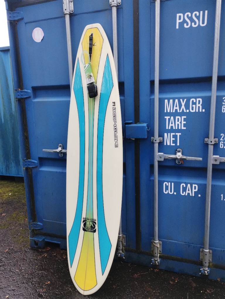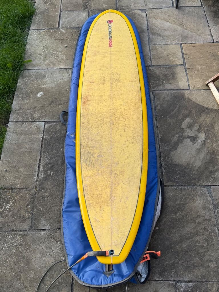 In more than usable condition. Few dings but all watertight. This board is in used condition. Also comes with a spare leash and but. Bag unfortunately has a broken zip tho.