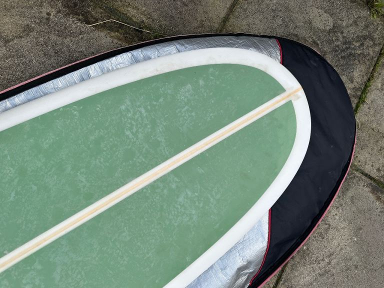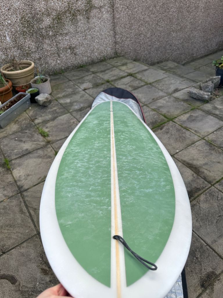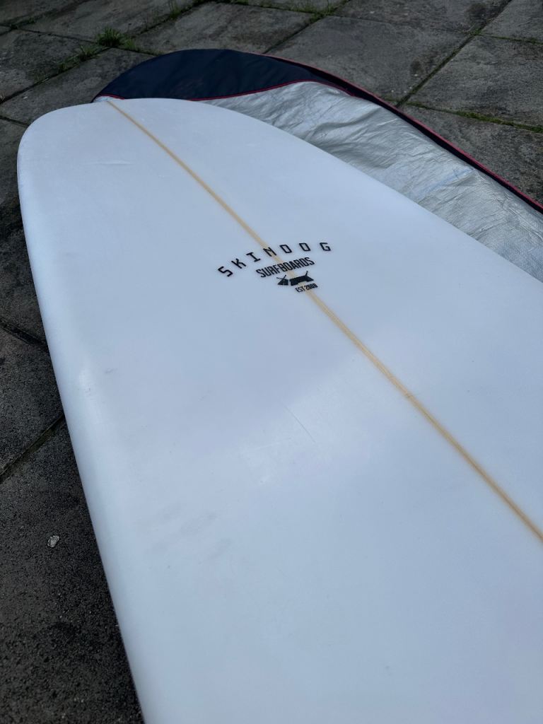 Skindog surfboards 9’4 quill with green deck spray. Approx 3.5 years old and in great condition, recently had a full MOT done by Arno Surfboards for any repairs.