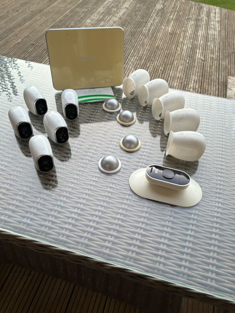 Arlo security cameras, base station and doorbell for sale