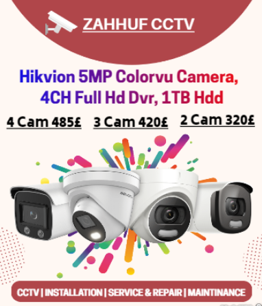 Hikvision 4 cameras 5mp hikvision dvr 8mp 4ch 1tb storage upto 3 weeks with fixing and installation including mob app configuration price reduced hurry up