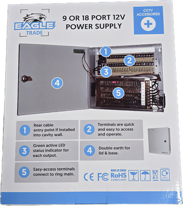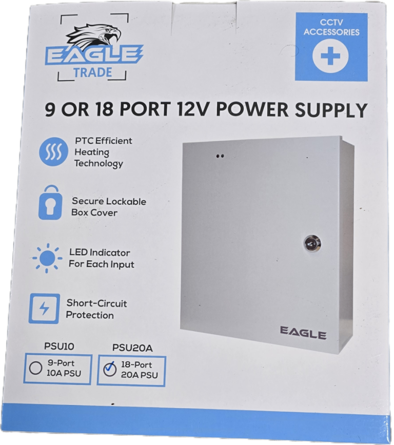 Qvis EAGLE Brand 18 Way 12V 20A Power Supply PSU Lockable Metal Box