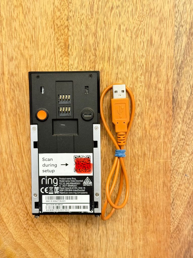 Used door bell/surveillance camera in perfect working condition, with original USB charge cable and screw driver (to take off from base)