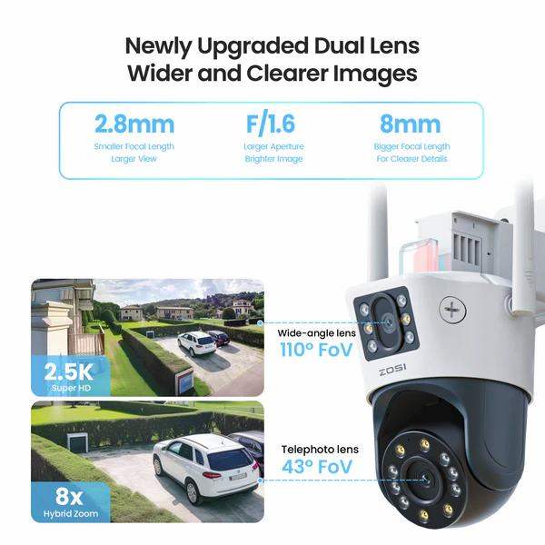 •Stable WiFi Connection:The dual-lens security camera offers flexibility with 2.4 GHz WiFi frequencies, ensuring a stable and fast connection.