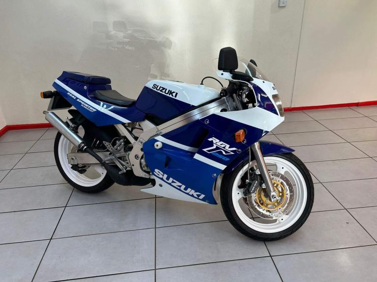 1989 SUZUKI RGV250 VJ21ONLY COVERED 39,548 FROM NEW.249cc 2 CYLINDER V-TWIN, LIQUID COOLED 2 STROKE PETROL PRODUCING 61BHP.ONLY 4 OWNERS FROM NEW!PREVIOUS OWNER HAS HAD THIS BIKE FOR OVER 20 YEARS!THIS BEAUTIFUL SUZUKI RGV250 VJ21 IS IN ABSOLUTELY STUNNING CONDITION, HAVING BEEN FULLY RESTORED, INCLUDING A FULL ENGINE REBUILD, WITH NO EXPENSE SPARED!Nothing beats the crisp shrill of a two-stroke on-pipe. It’s an aural treat, particularly for those of a certain age who still ride with a finger hovering over the clutch lever. Suzuki’s RGV250 Gamma was the backbone of that soundtrack in the late 1980s and through the ’90s, a time when race replicas were the engine room of the UK motorcycle market. And even though two-strokes stopped rolling off manufacturers’ production lines more than 20 years ago, the RGV250 remains a favourite for those who like their riding dipped in Grand Prix DNA.SPEC INCLUDES : Totally Standard!Fantastic Condition.Must be seen!Viewing available in our Corby showroom.Finance available,Cards accepted.Call 01536 201398