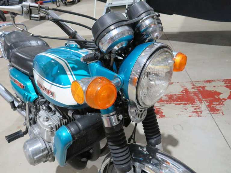 This lot will be auctioned via Iconic Auctioneers, The Iconic Sale at Race Retro 2026 - Motorcycles on Sunday the 22nd of February, Stoneleigh Park, Stoneleigh Rd, Coventry, CV8 2LG. , Water-cooled two-stroke triple GT750, known as the 'kettle' in the UK,Launched in 1971 as a sports tourer boasting 67bhp,First year of production Model J featured a 200mm twin leading-shoe front brake drum,Correct numbers (confirmed by Crooks Suzuki) finished in eye-catching Candy Jackal Blue,Mostly original and unrestored, fitted with an aftermarket exhaust system but complete with its original,Part of a large collection stored in a heated hanger,Running recently but may need some basic safety checks before road use,Great example of this model J 'kettle',UK-registered on a current V5C,