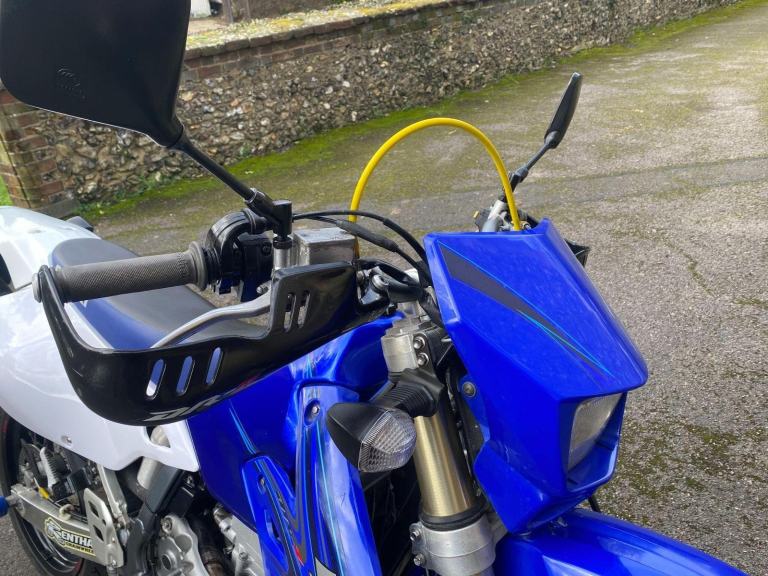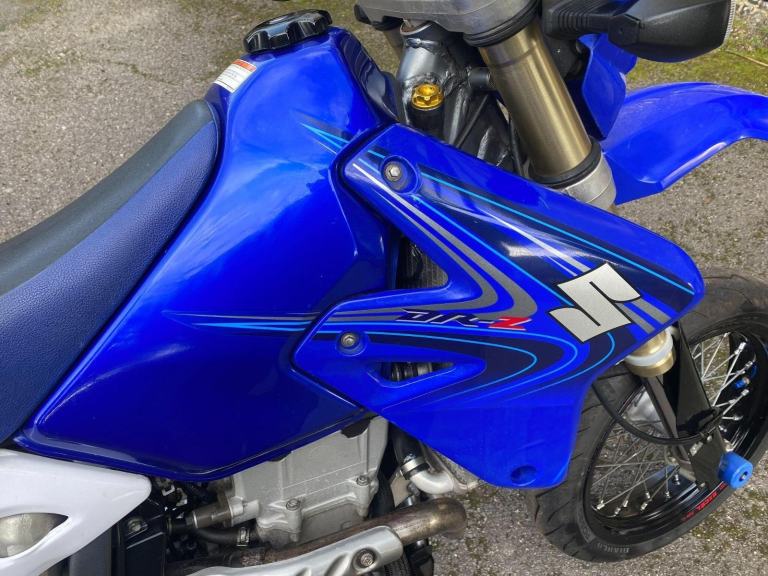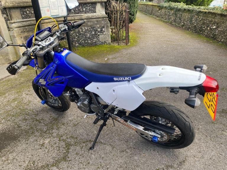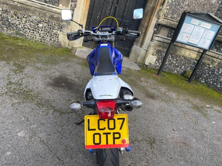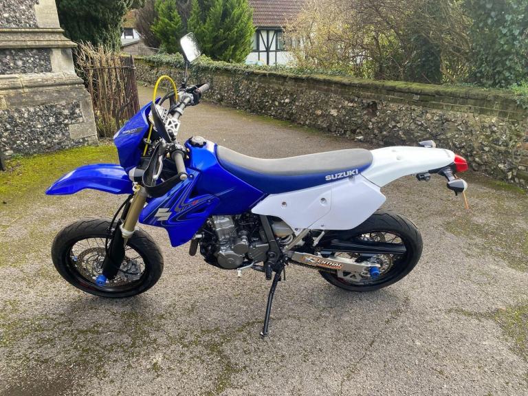 Blue, 2007 (07) Suzuki DRZ400SM-K7 SuperMoto in Candy Grand Blue Pearl/ Special White that has covered 22353 miles.In standard condition with colour-coded fork and swinging-arm protectors, folding gear-change lever, hand-guards, Renthal Fat Bars and a gold oil filer cap.The bike has been previously very well cared for as you will see from the photos.2 sets of keys and an owner's manual.Will be serviced by us.MOT until 23/1/2027NATIONWIDE COURIER DELIVERY FROM £99, 7 owners, , Courier Delivery / Finance / Part-Exchange and Extended Warranty are all available