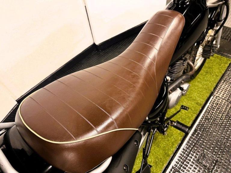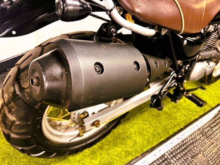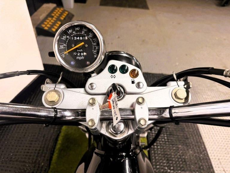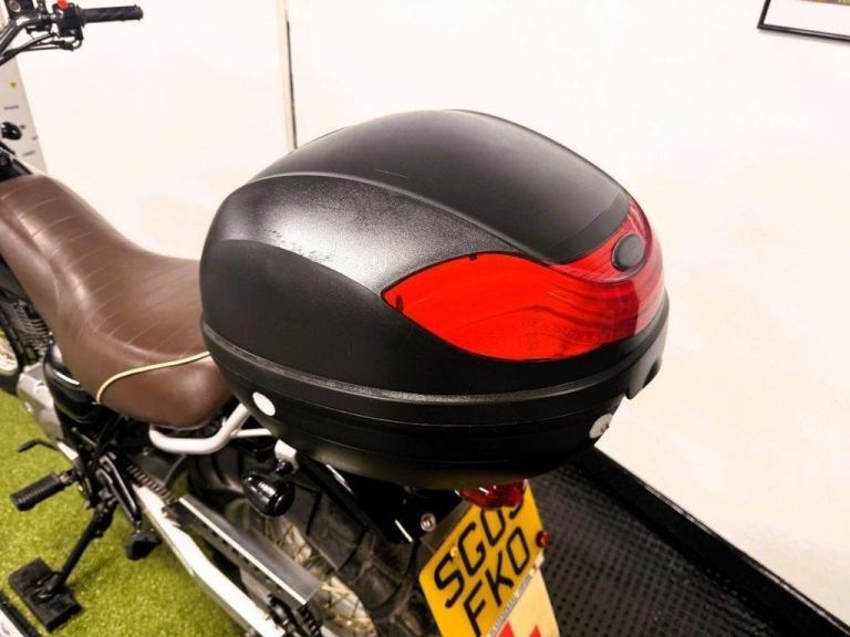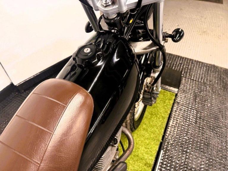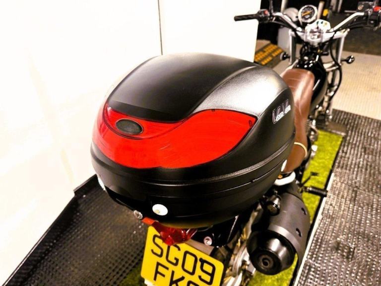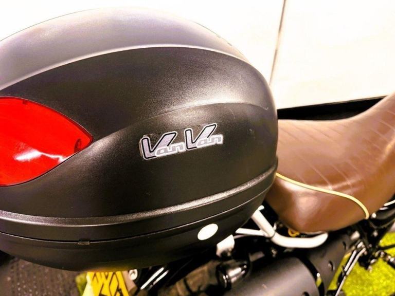 This example is finished in metallic black with a contrasting deep brown seat, a rear rack with a top box has been fitted and you also have a centre stand for pro-longed parking periods or when maintaining the bike. The large, chunky wheels are a massive people pleaser with fans of the Van Van, making the ride feel really connected and planted to the road!