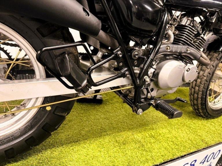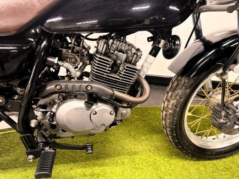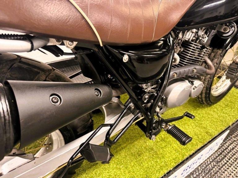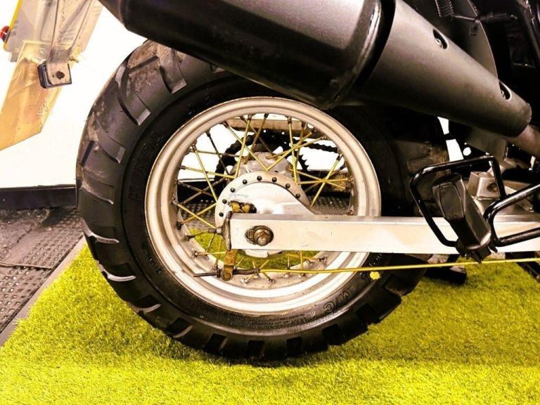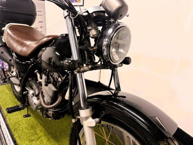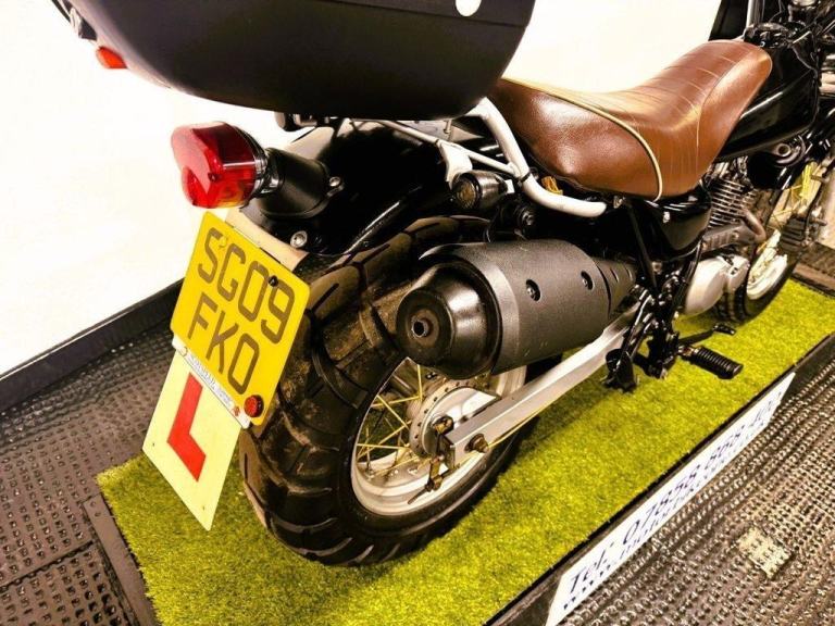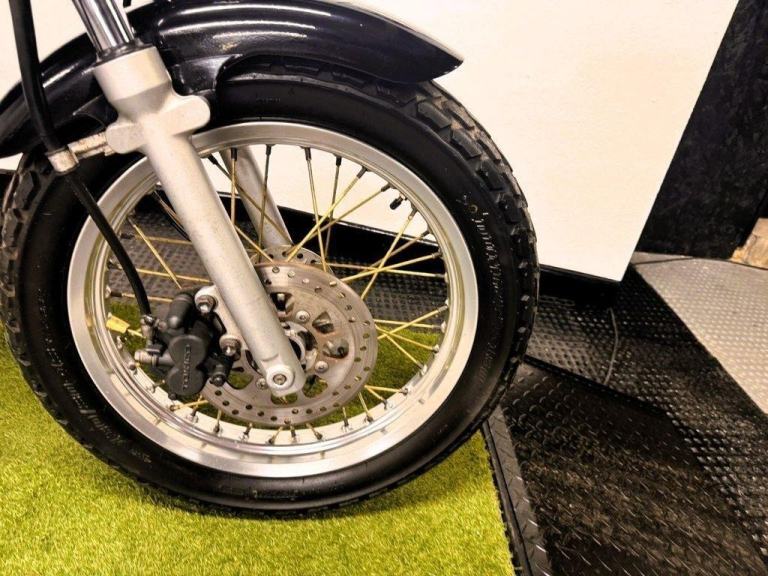 This example is finished in metallic black with a contrasting deep brown seat, a rear rack with a top box has been fitted and you also have a centre stand for pro-longed parking periods or when maintaining the bike. The large, chunky wheels are a massive people pleaser with fans of the Van Van, making the ride feel really connected and planted to the road!