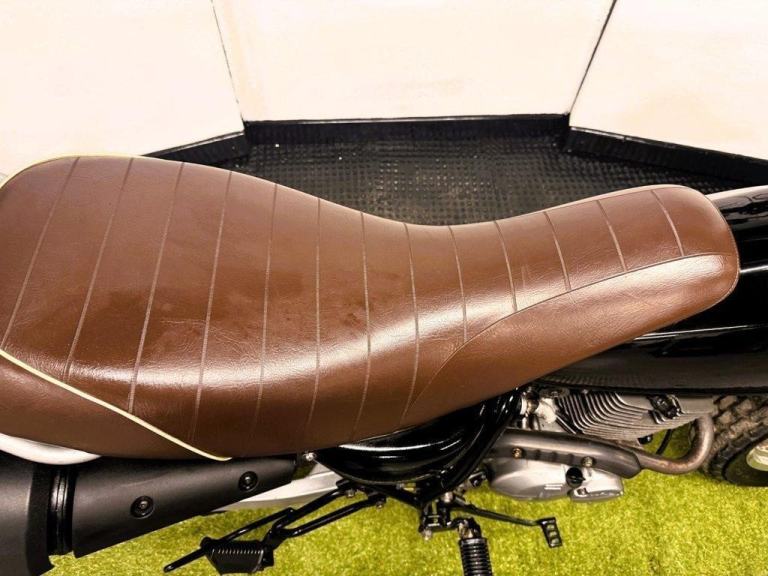 The previous owner wanted a more custom look, so they had a full re-spray from white to black, had the seat done in contrasting brown and added the gold spokes for that extra touch!