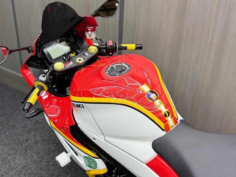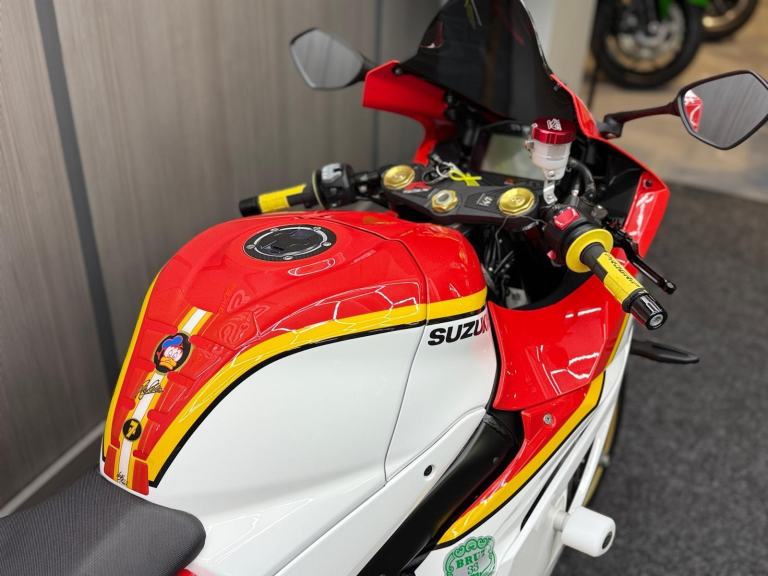 2017 17 Suzuki GSXR 1000 AL7 BARRY SHEENE REPLICA finished in iconic white yellow and black professional Barry Sheene replica paintwork carried out by Dream Machine. The bike benefits from the addition of the tinted screen, Aftermarket black levers, Aftermarket grips, Seat cowl, Tail tidy, White crash bobbins, Leo Vince exhaust and evotech exhaust hanger. This is a rare extremely well looked after bike that would look fantastic in anyone's collection. Comes complete with original owners manuals Full service history (5 stamps) & Spare key, 12 Months MOT, and freshly serviced & 3 Months Nationwide Warranty, FOR FURTHER DETAILS PLEASE CALL BRIGHOUSE SUPERBIKES ON 01484 973625 or [Phone number removed]- ALL OF OUR VEHICLES ARE HPI & MILEAGE CHECKED - FULL WALK AROUND VIDEOS AVAILABLE ON REQUEST - LOW RATE FINANCE ARRANGED - PX WELCOME - NATIONWIDE DELIVERY, White, £10,490