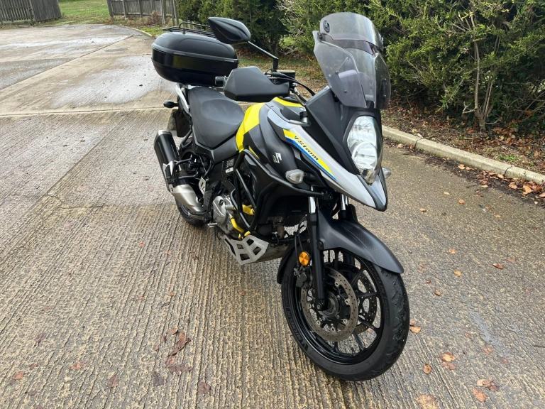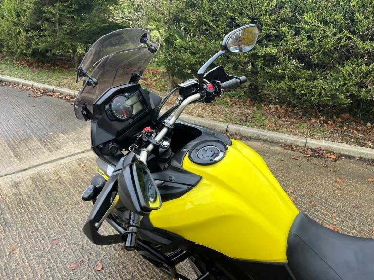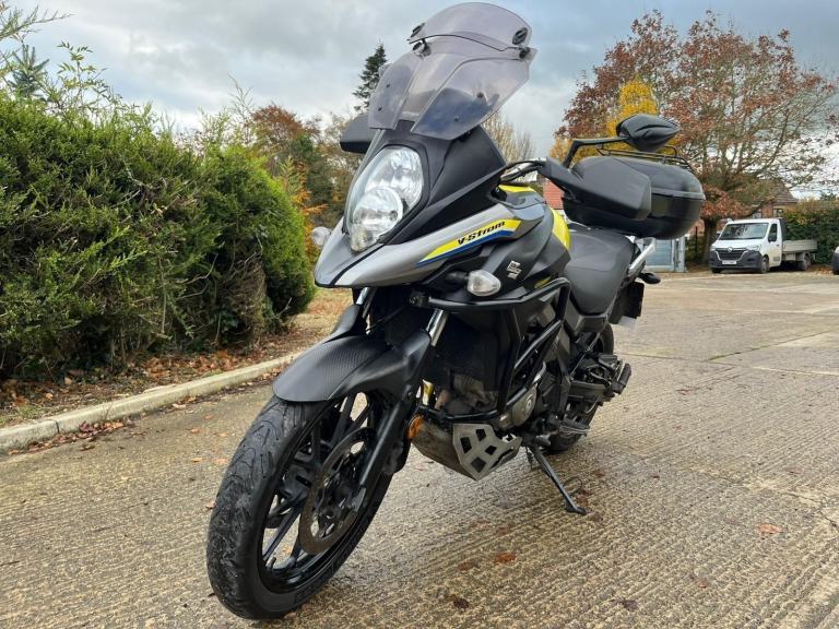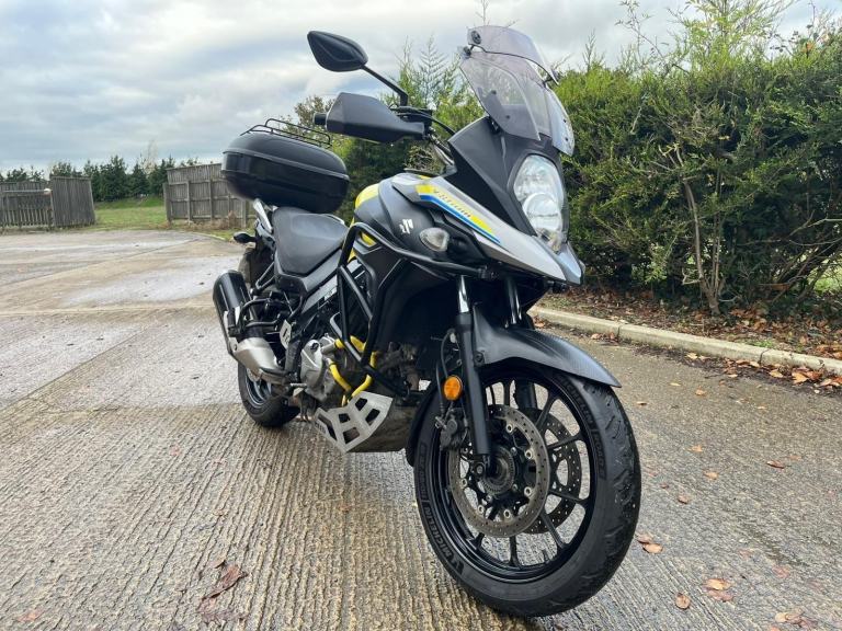 Yellow Suzuki V-strom 650, year 2018 (18 reg.), 38,667 miles. PLEASE VISIT OUR WEBSITE DIRECTLY FOR THE FULL RANGE OF UP-TO-DATE STOCK WHICH MAY NOT BE ON OTHER PLATFORMS. VIEWING STRICTLY BY APPOINTMENT ONLY. Visit [Website URL removed] call 01759 591666 or email [Email address removed. Click Email button to contact us.] for more details.