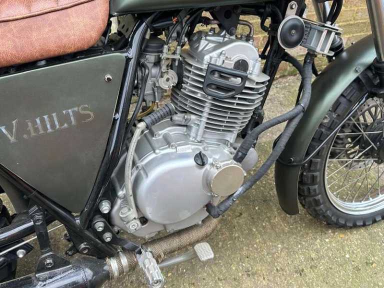 This lot will be auctioned via Iconic Auctioneers, The Iconic Motorcycle Sale at Shuttleworth 2026 on Sunday the 19th of April, Shuttleworth, Old Warden Park, Beds, SG18 9EP . , A 2005 Suzuki TU 250, 249cc single-cylinder, converted to a Steve McQueen Great Escape replica with clear attention to detail,Finished in matte green with a brown/tan leather seat, capturing the purposeful, period-inspired aesthetic,Photographic record on file documenting the McQueen replica build, completed in 2022,Fitted with a SuperTrapp silencer, complementing its custom specification,Showing 6,300km at the time of its last MOT in 2022,Accompanied by a good history file including V5C and numerous receipts for parts and works,Unused since 2024 and will therefore require recommissioning prior to returning to active road use,Offered without reserve, representing an engaging and individual lightweight classic,