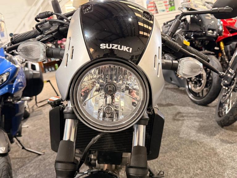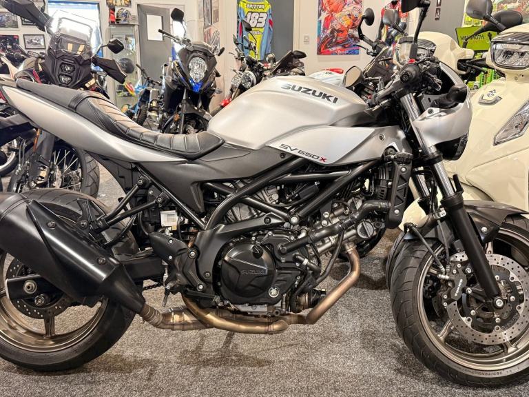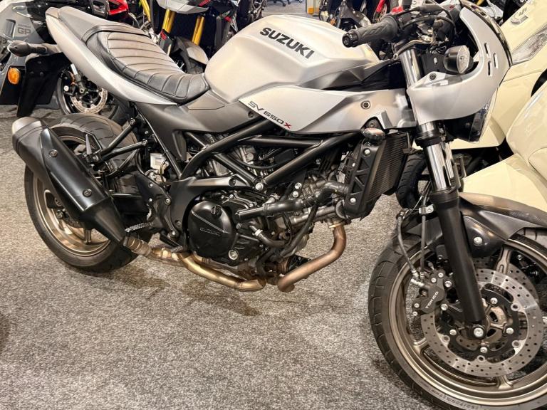 Just arrived in @ Powerslide Derby is this gorgeous example of the extremely popular Suzuki SV 650 x. Finished off in a stunning silver colour scheme and complete Retro styling and powered by the legendary 649 V Twin