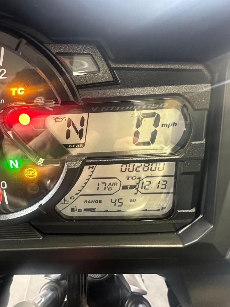 Black, The ultimate to do-it-all. Every day commuting, rough and wet conditions, B-Road twisties, long highway stretches, two-up comfort, the tool that never lets you down. Think of a task, a challenge, an adventure. The answer to every thought. V-Strom 650.1 Owner bike with very low mileage ! In great condition throughout as you'd expect with such low mileage.Full service history with 2 service stamps in the book, last serviced at 2713 miles.Supplied with all original keys, handbooks and service book. Fitted with Oxford Heated Grips and a Givi Topbox.As with all Greenham Kawasaki used models, it includes a 12-month guarantee for your peace of mind, with nationwide delivery also an option. Should you have any additional questions about this or any other model here at Greenham Kawasaki, please do reach out to us on 01635 916464 ? we look forward to hearing from you. Part exchange very welcome., 0 owners, 2 keys, ABS, Belly Pan, Carbon Exhaust, Electric start, Engine Bars, Hand Guards, Heated Grips, Heated Seats, LED Indicators, Tank Pad, Tinted Screen, Top Box, Touring screen, Traction Control