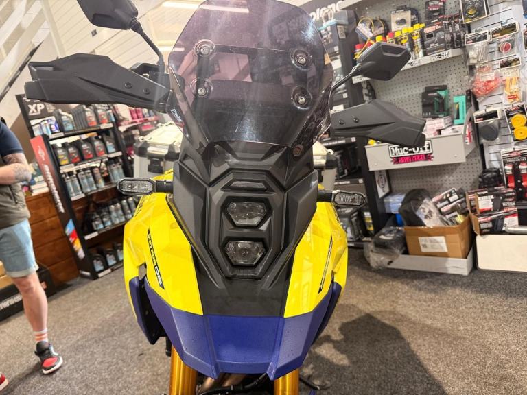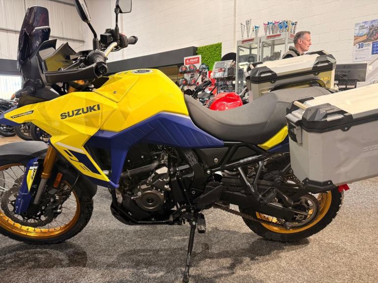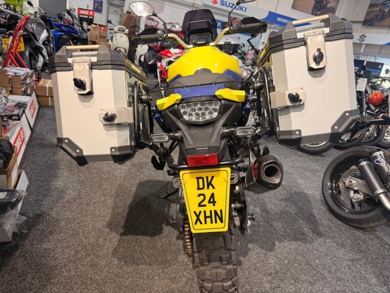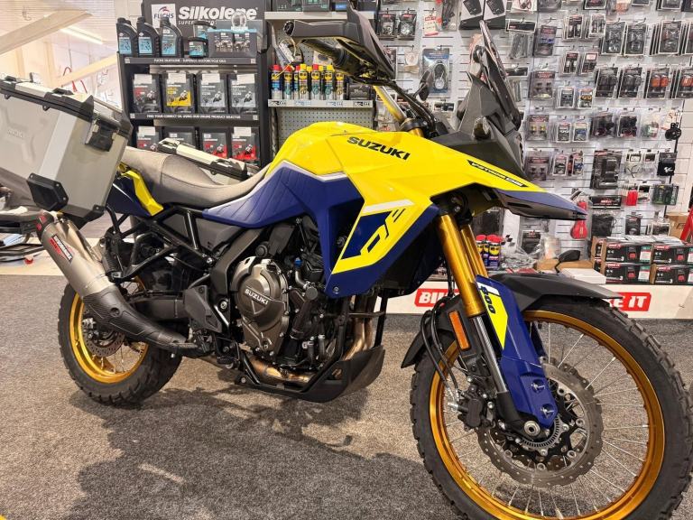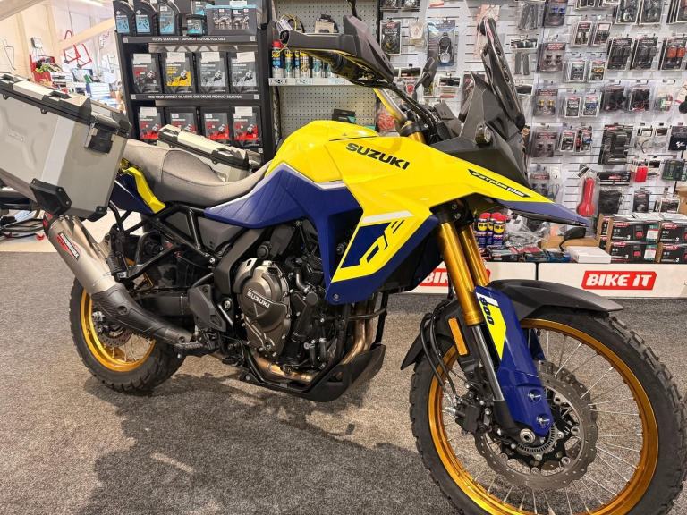 Just arrived in @ Powerslide Derby is this stunning example of the extremely popular Suzuki V Strom 800 DE. This bike was originally sold by us and has covered just over 900 miles. The bike benefits from genuine Suzuki panniers and a Yoshimura exhaust that sounds unreal. The bike as standard benefits from traction control, rider modes, autoblipper and more