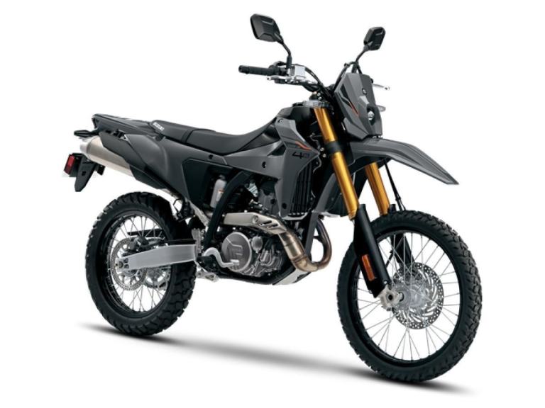 All-new 2025 DR-Z4S. This new model redefines versatility and performance, built for riders who want the best of both worlds. Starting with an all-new twin-spar steel frame and aluminum subframe, Suzuki engineers have crafted a chassis that enhances stability and handling across diverse terrains. At its heart, the fully redesigned 398cc engine now features electronic fuel injection and Ride-by-Wire throttle body, delivering a refined, torque-filled performance.