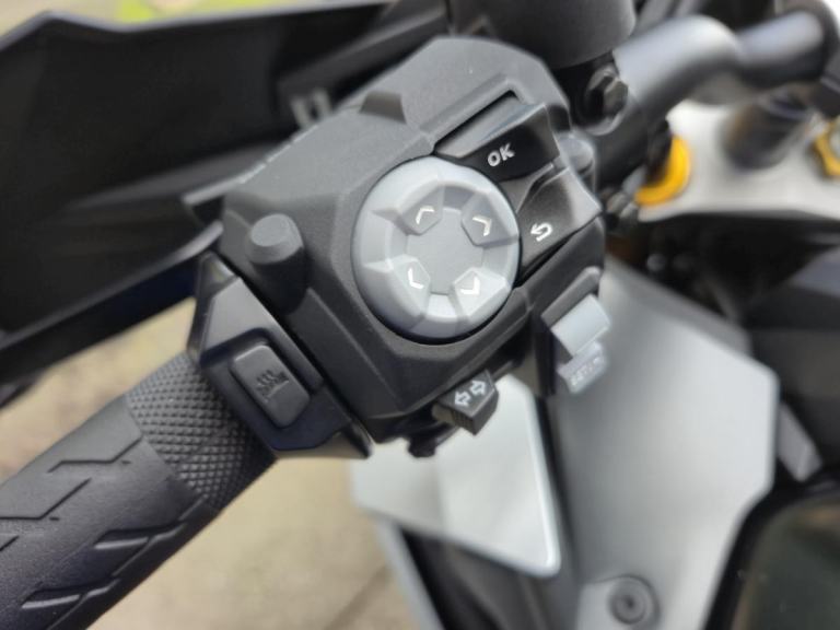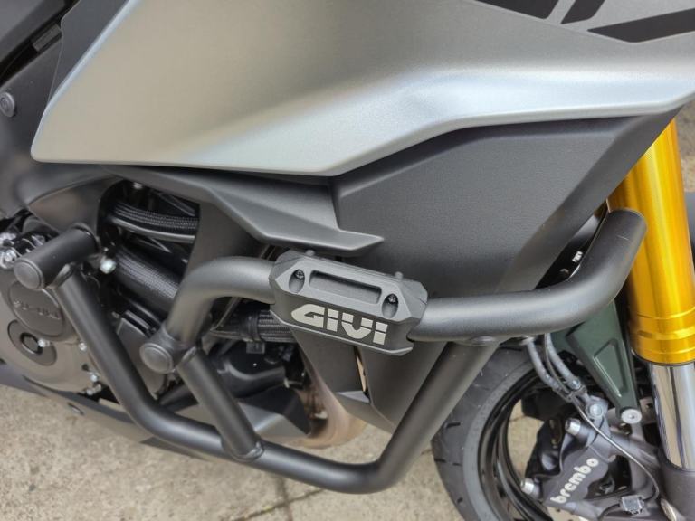 Suzuki GSX-S1000GX with engine bars and genuine Suzuki heated grips.