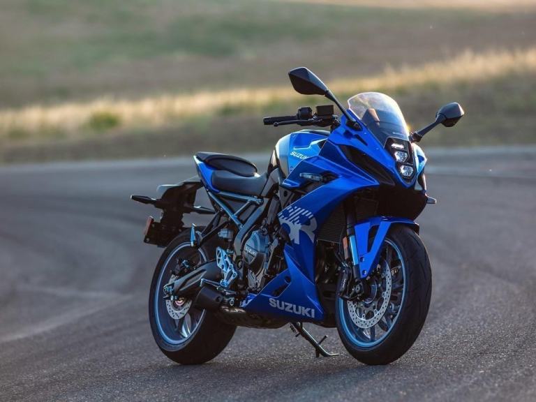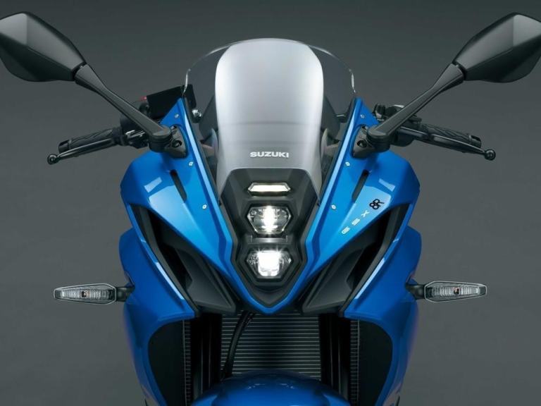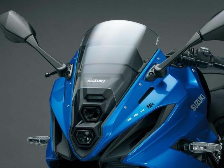 Immediately highlighting the R element of the new GSX-8R is its full fairing, wind tunnel-tested to increase aerodynamic performance and provide weather protection for the rider. Bold 8R logos adorn the side panels, while fairing-mounted mirrors also aid in reducing drag. Perched in the middle of the angular face is the recognisably GSX series stacked LED headlight, topped by an LED position light. The rear combination light is also full LED, as are the indicators. At the heart of the new GSX-8R is the 776cc parallel twin engine - which it shares with the GSX-8S - with its long stroke and 270° crankshaft design providing an abundance of low-down torque, usability, and flexibility, while a free-revving nature comes from a DOHC and four valves per cylinder. Peak torque is 78 Nm, delivered at 6800rpm, with peak power of 82.9PS coming at 8500rpm.The 270° crankshaft also provides a power delivery, character, and rumble reminiscent of Suzuki' much-lauded V-twin ranges, while a patented cross balancer design ensures a smoothness, as well as aiding in a compact, lightweight engine design.A two-into-one exhaust system with dual-stage catalytic converter keeps the 8R conforming toEuro 5 emissions standards, and ends in a short, underslung silencer further enhancing the compact, slimline look.All of that is housed in a steel frame engineered for direct handling characteristics. Those handling characteristics are further enhanced by low, forged aluminium handlebars that providepositive control and a sporty riding position, placing more of the rider' weight over the frontwheel. Bolted into the rear of the steel frame is a lightweight aluminium subframe and lightweight aluminium swingarm,Dealing with the increased weight bias towards the front, Showa provides the suspension, withSFF-BP* (Separate Function Fork - Big Piston) inverted forks and monoshock in the rear.Mounted radially to the forks are Nissin four-piston calipers, providing stopping power by biting310mm discs. Tyres are Dunlop Roadsport 2s.Aiding rideability, usability, and flexibility is a suite of electronic systems that includes a bi-directional quickshifter as standard, three selectable engine power modes, and three selectabletraction control settings, plus the ability to disengage the system entirely. There' also Suzuki' low RPM assist and easy-start function.The GSX-8R' settings are easy to navigate via a single rocker switch on the left-handhandlebar, with the information displayed clearly on a colour 5" TFT screen.