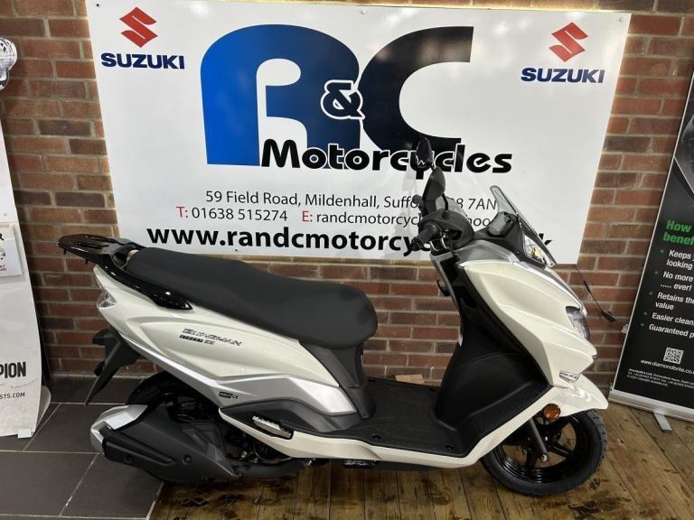 Posting for 7+ yearsPearl White Burgman 125cc Pre-Registered, Unridden
