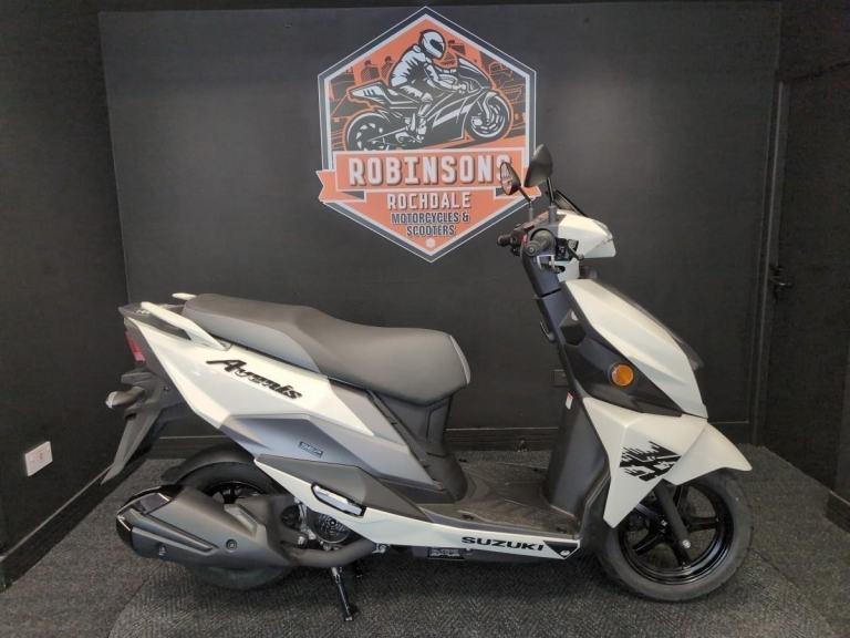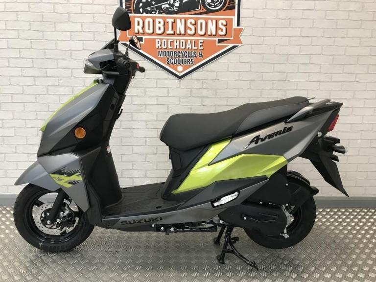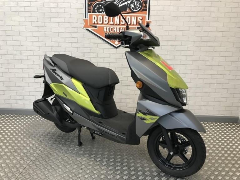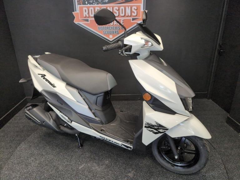 Pre Reg Offer or new only £2599 Ask about 7 Years warranty. Now avaialble. Suzuki Avenis 125 choice of colour... Sharp lines and a sporty stance deliver performance and style wherever you go. Beneath its athletic body, an agile chassis, punchy Suzuki Eco Performance (SEP) engine, and smart features are primed ready to perform through busy city streets. A fun dynamic ride, exceptional 148MPG⁶ economy, 21.5L underseat storage² and smartphone charging power your every ride. SPORTY CITY FUN...