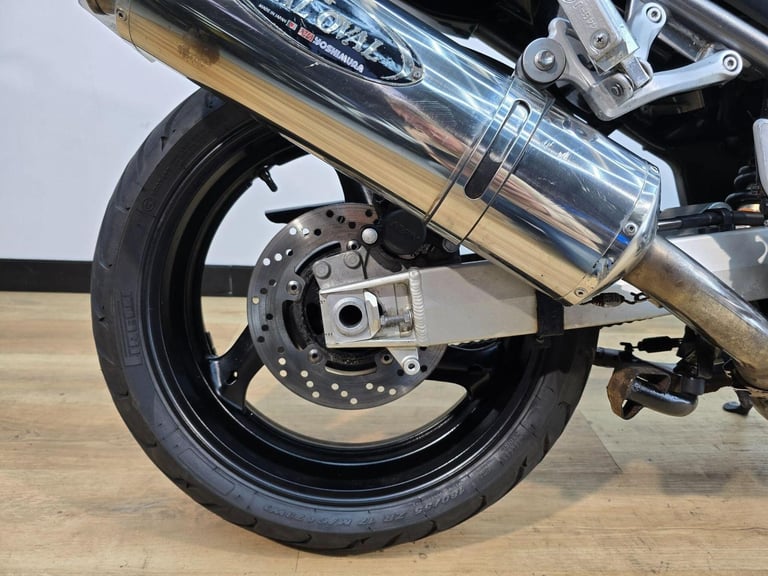 This particular Bandit comes loaded with purposeful and stylish upgrades. Performance and sound are significantly enhanced by the striking Yoshimura Dual Oval Exhaust. Practicality is boosted with a Centre Stand for easy maintenance, a Grab Handle for pillion security, and Handlebar Risers for an improved, more relaxed riding posture. The appearance is cleaned up with a Tail Tidy, while protection is added by a Pyramid Hugger/Chain Guard and a Fender Extender. All key information is displayed clearly on the Semi Digital Display.