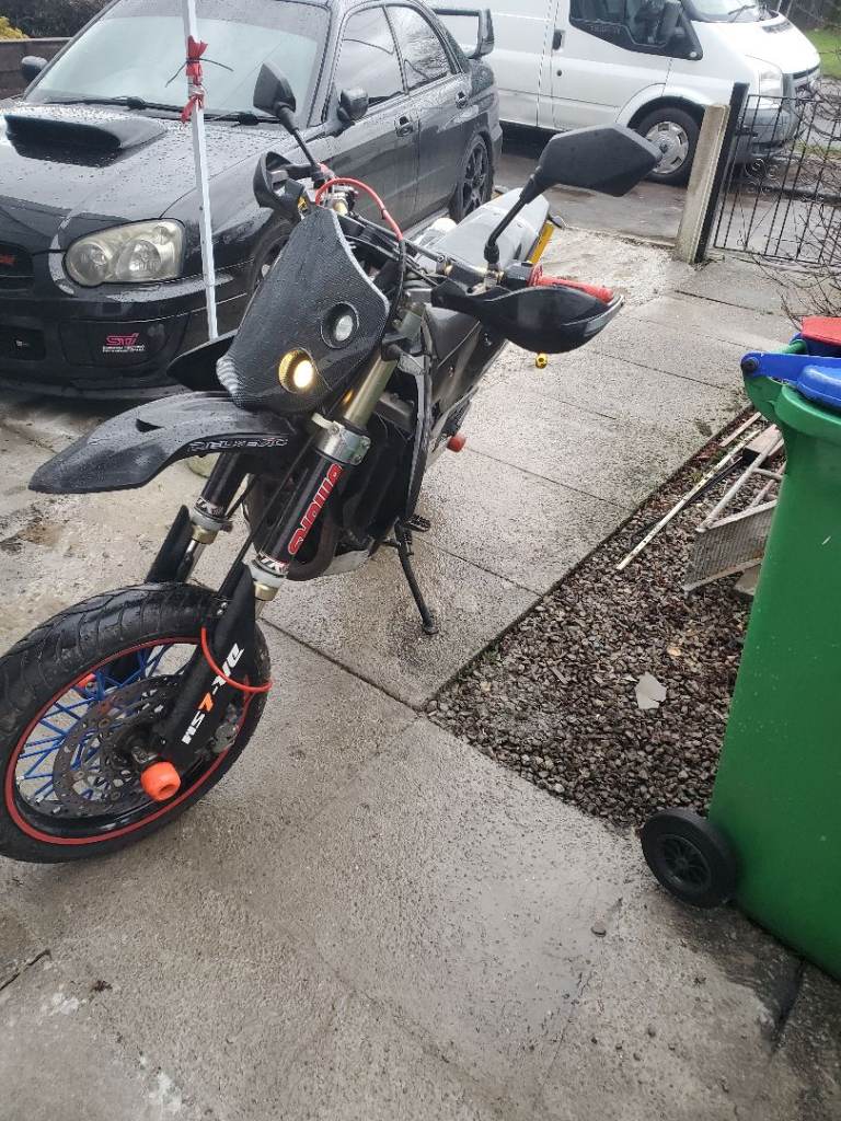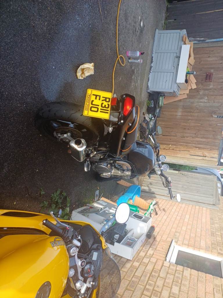 Lovely little bike used for commute to work and a little bit of fun too. Wide handle bars n bar ends fitted. Very comfy to ride probably the comfiest bike ive ever ridden. Goes well and is reliable little runner. Scorpion exhaust fitted giving a the most raspy aggressive sound. Recently had re sprayed black with metallic blue flecks. It looks gorgeous in the sun. Shes been a bit of a project/ tinker bike for me and im pleased with her. Shame to let her go but recently moved to a house with tight rear access meaning I have bikes to let gofeel free to call me any time