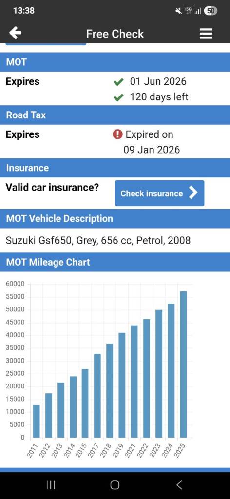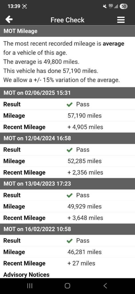 Our vehicle history check is provided for guidance only. Please check all the details with the seller before purchasing