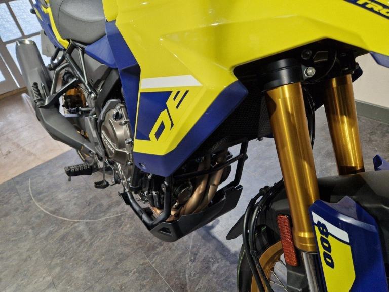 We have this stunning Suzuki VStrom 800 DE in yellow colour with one owner from new. The bike comes as standard with a radiator guard, hand guards, and a plastic skid plate, but does benefit from a genuine Suzuki high screen. The V Strom 800 DE is built for the big adventure, be it on or off road. The bike comes with all the technology you need with the Suzuki Intelligent Ride System, Bi-directional Quick Shift System, Suzuki Drive Mode Selector (SDMS), Suzuki Traction Control System (STCS), Switchable ABS, Switch Rear ABS Off, Gravel (G) Mode, Suzuki Easy Start & Low RPM Assist so you can adjust the bike to your riding needs. The screen is a 5" TFT, so it shows you clearly what settings you are in. All the lights are LED. This bike has had an Oxford Tail Bag, a Suzuki Tank Bag, a Radiator Guard, and a Side Stand Foot Pad. Our factory-trained mechanics will fully check the bike. This bike also benefits from the Suzuki 7-year warranty. We offer P.C.P. and H.P. finance, subject to acceptance.