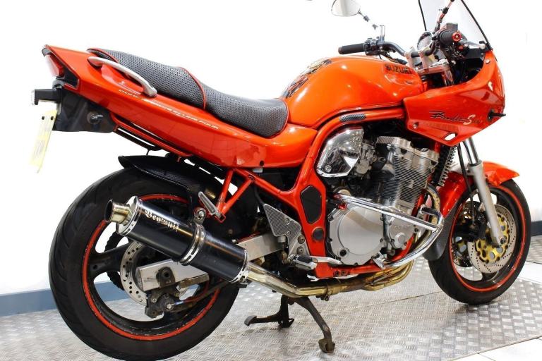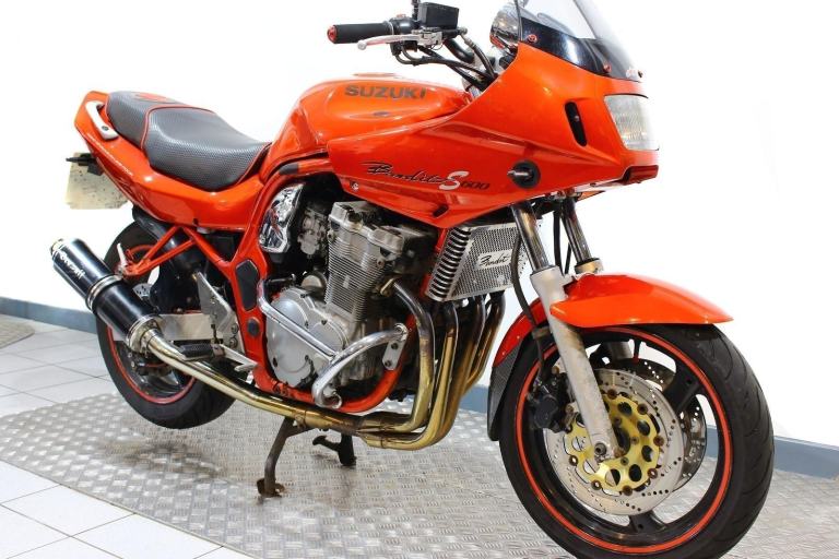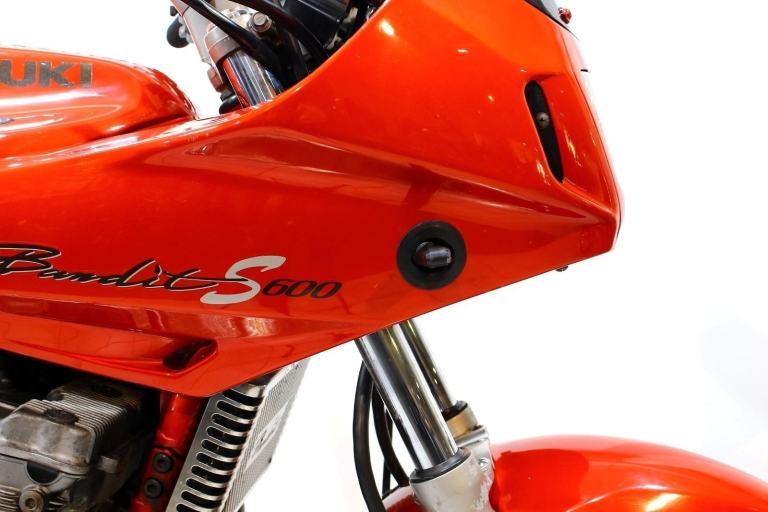 1997 Suzuki GSF600S Bandit in orange. 44,603 miles. Date of registration 25/10/1997. With Beowulf silencer, engine bars, oil cooler guard and rear hugger. Trade in to clear. MOT until May 2026.